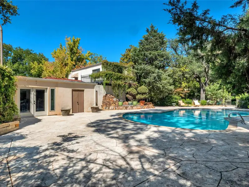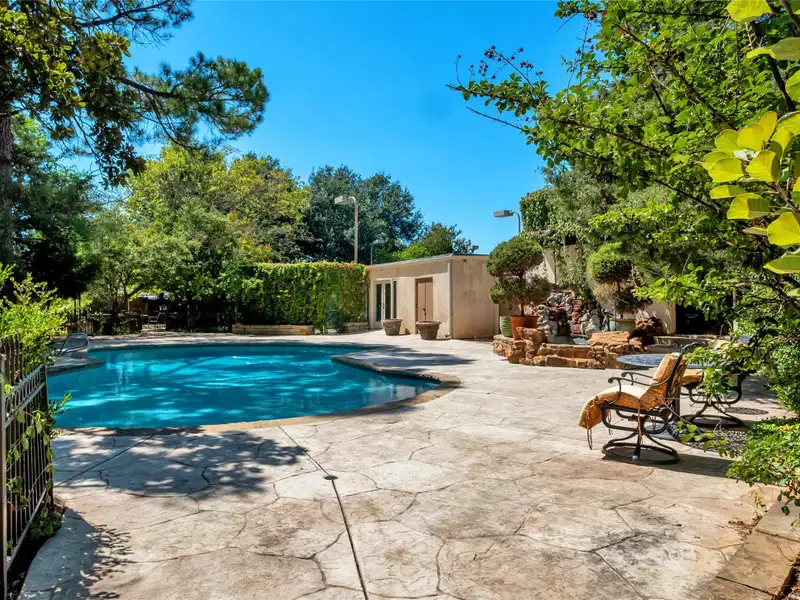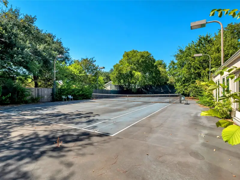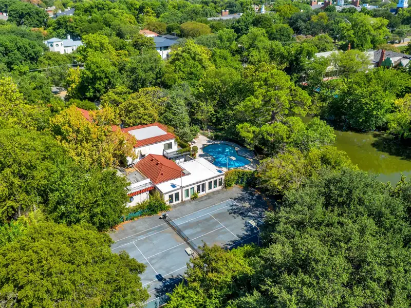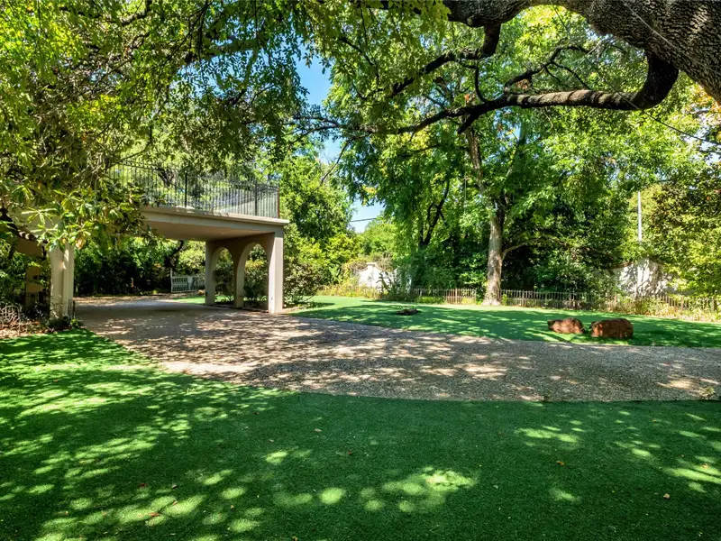 - Mature trees and lush landscaping