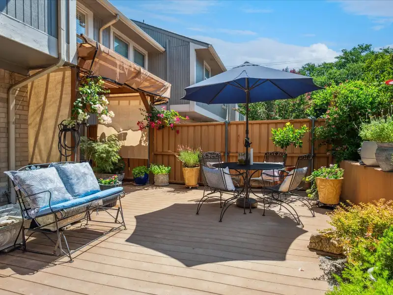 - Large private patio with Trex deck and pergola