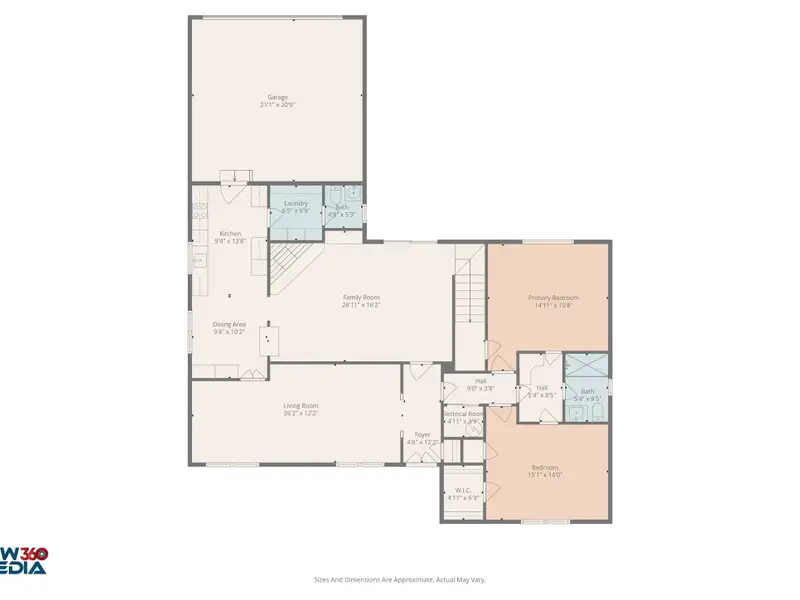- Two large living areas