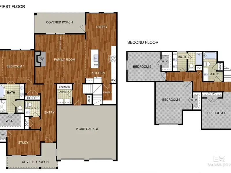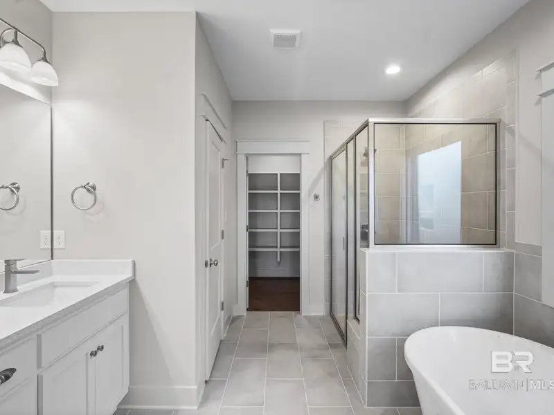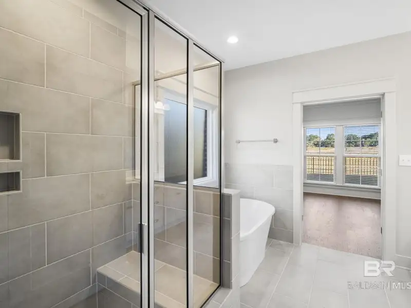 - First-floor primary suite with soaking tub