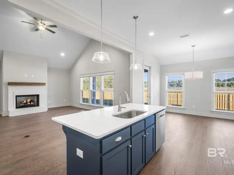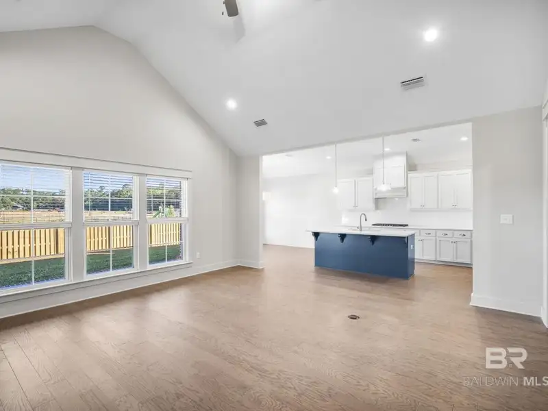 - Open-concept living with vaulted ceilings