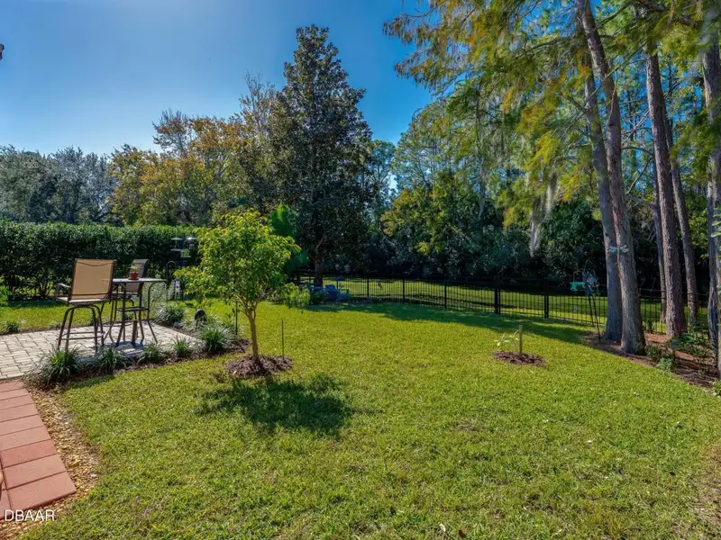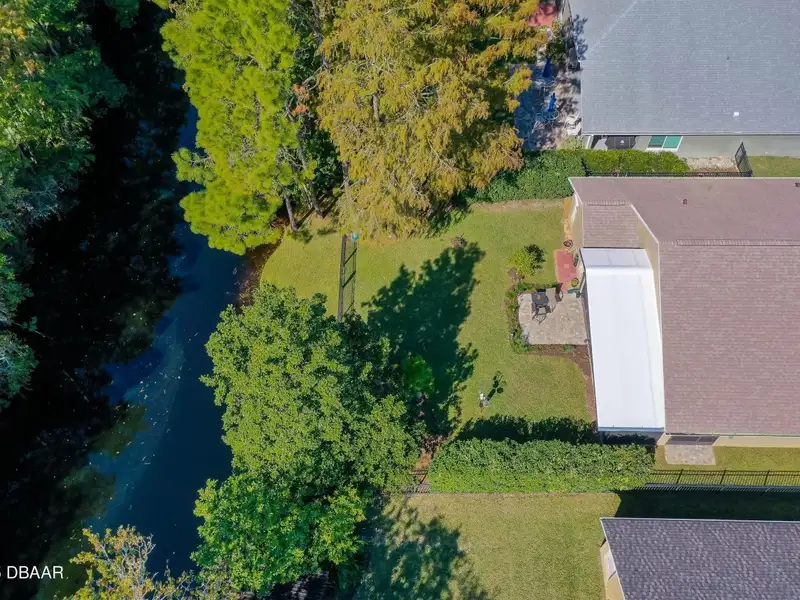 - Spacious fenced backyard with canal view
