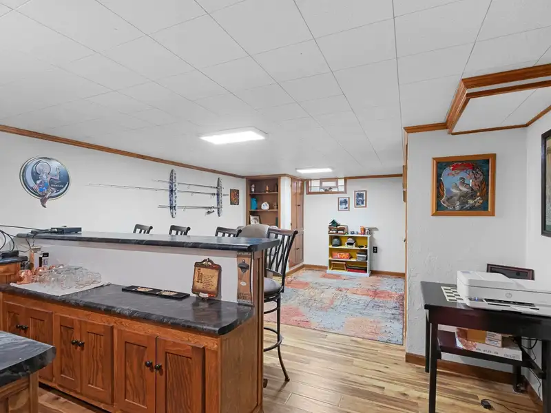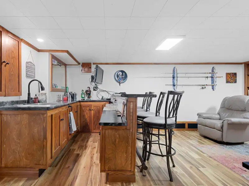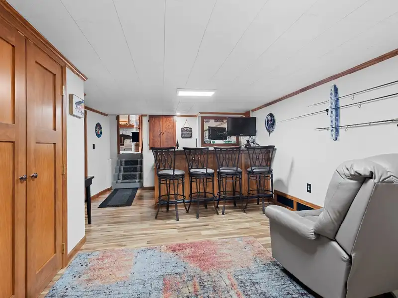 - Finished lower family room with bar