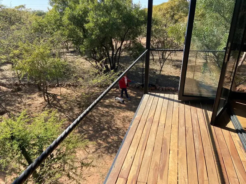 This off-grid farm is equipped with solar power and backup storage, a strong borehole with multiple water tanks, and robust security infrastructure. Access to the property is via a short 1km sandy road. It is fully enclosed with 2.4m game fencing as well as an additional 2.4m electric perimeter, offering privacy, freedom of movement, and safety.