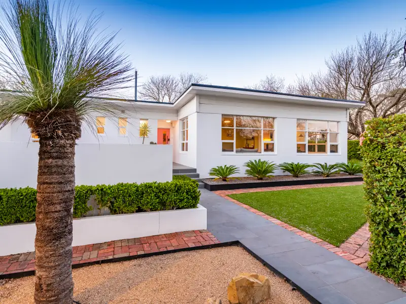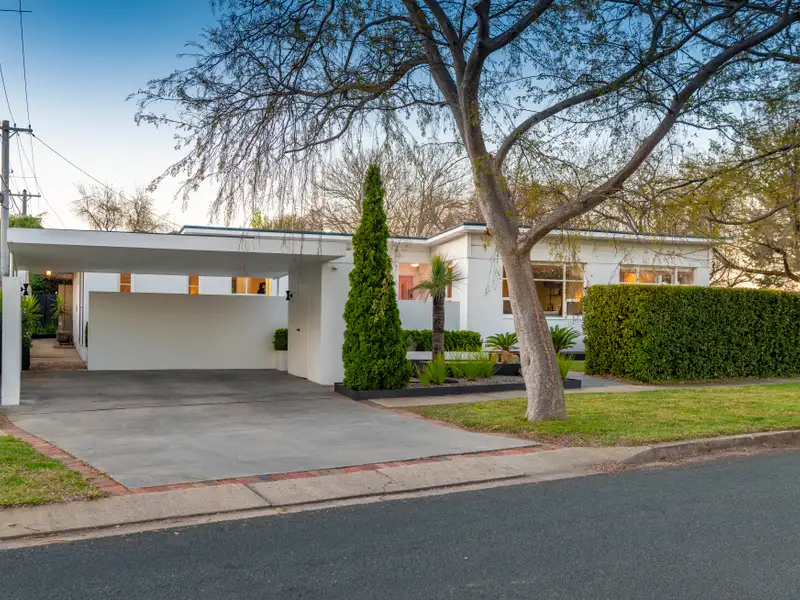 Tucked discreetly behind a lush, manicured hedge and beneath the dappled canopy of stately Chinese elm street trees, this distinguished residence is a rare offering in one of Canberra's most sought-after enclaves. An architectural gem, this iconic Deakin home blends timeless mid-century modernism with sophisticated contemporary updates-offering an exceptional lifestyle just moments from the lake, the Private Hospital, and the vibrant EQ business precinct.