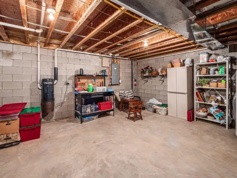 - Large finished lower level rec room