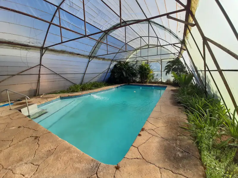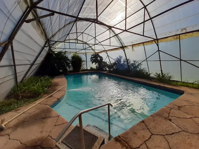 - Covered swimming pool with plants