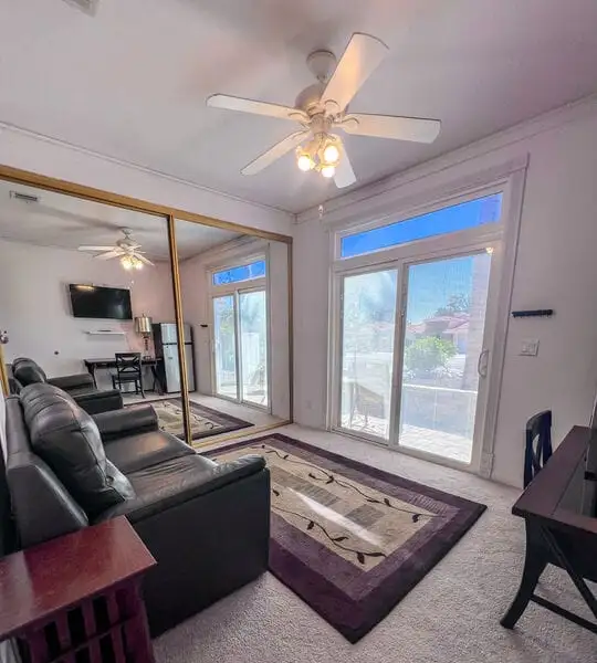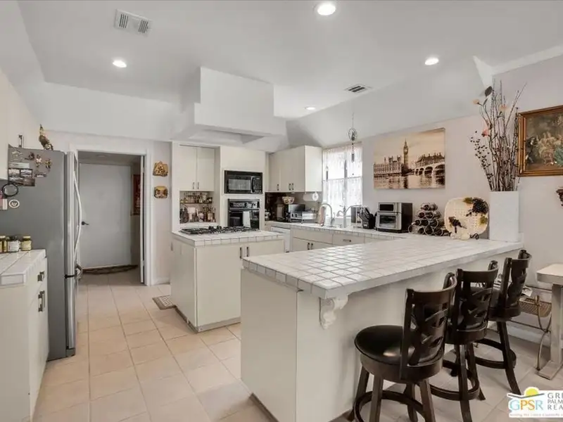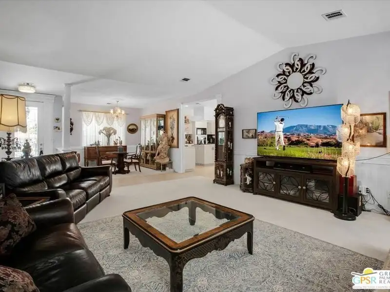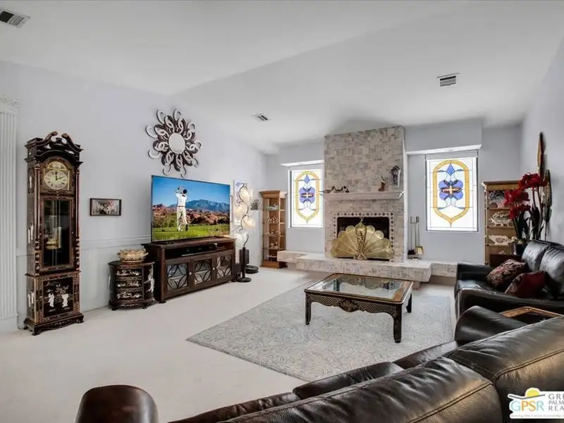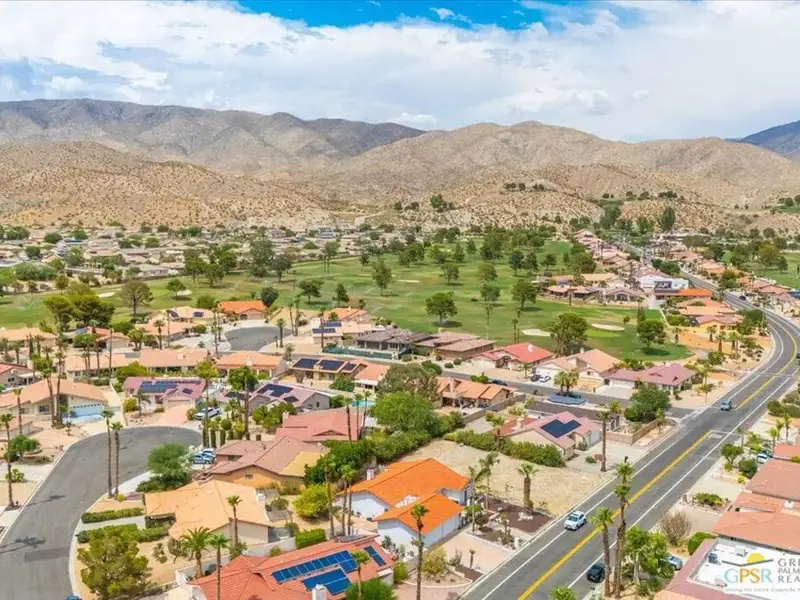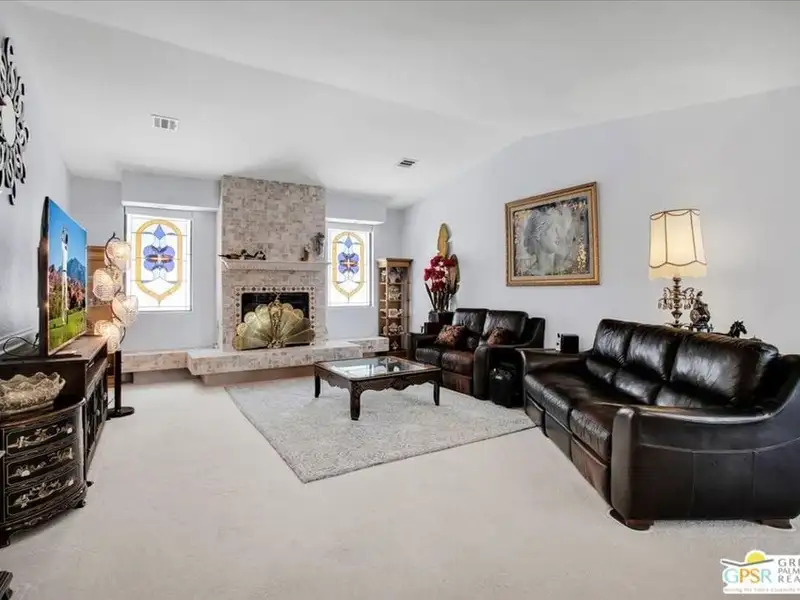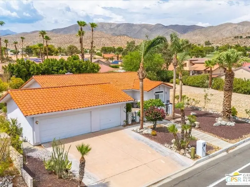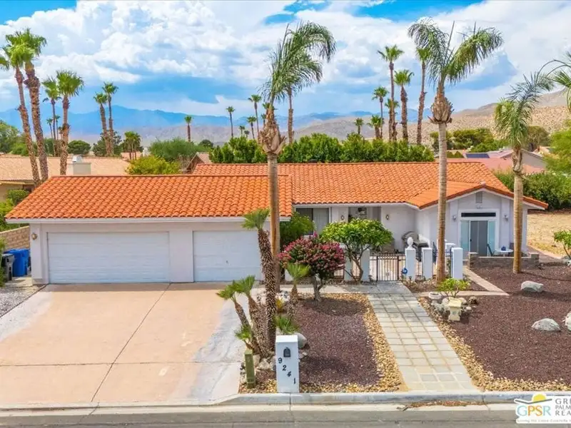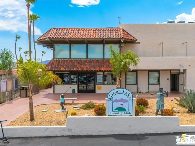 Welcome to 9241 Clubhouse Blvd, a spacious 3-bedroom, 2-bath single-family home offering nearly 2,000 square feet of bright and comfortable living in the sought-after Mission Lakes Country Club community in Desert Hot Springs. This property combines relaxed desert living with incredible amenities including unlimited golf for two owners on title, all covered by low monthly HOA dues. From the moment you arrive, the hand-laid paver courtyard creates a warm and inviting entry, ideal for enjoying a quiet morning coffee or an evening chat as the desert sky glows. Inside, the home welcomes you with soaring ceilings, large windows, and a thoughtfully updated gas fireplace with Tiffany glass accents, setting a tone of charm and comfort throughout. The open-concept kitchen features a functional island and breakfast bar, seamlessly connecting to the dining and living areas perfect for entertaining or relaxed daily living. The second and third bedrooms offer a unique rental potential or guest flexibility, thanks to a set of French doors that open directly to the front courtyard, providing a semi-private entrance for guests, long-term tenants, or visiting friends. Each room is generously sized, and the three-car garage provides plenty of space for vehicles, storage, or a golf cart. The backyard offers an opportunity to customize your own outdoor retreat a blank canvas for drought-tolerant landscaping, a cozy fire pit, or alfresco dining space. Located just a short walk from the clubhouse, this home offers convenient access to all the Mission Lakes amenities, including the Ted Robinson designed 18-hole golf course, resort-style pool and spa, tennis courts, fitness center, and on-site restaurant and lounge. The community also provides roving security patrols both day and night, adding peace of mind for residents. 9241 Clubhouse Blvd is a standout opportunity to personalize a spacious home in a well-established, amenity-rich community. With its flexible layout, value-driven pricing, and enviable access to golf and recreation, this property is ready for your vision. Experience the easygoing desert lifestyle that makes Mission Lakes Country Club one of Desert Hot Springs' most appealing places to call home.