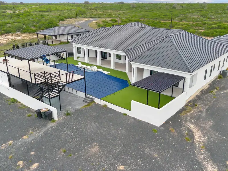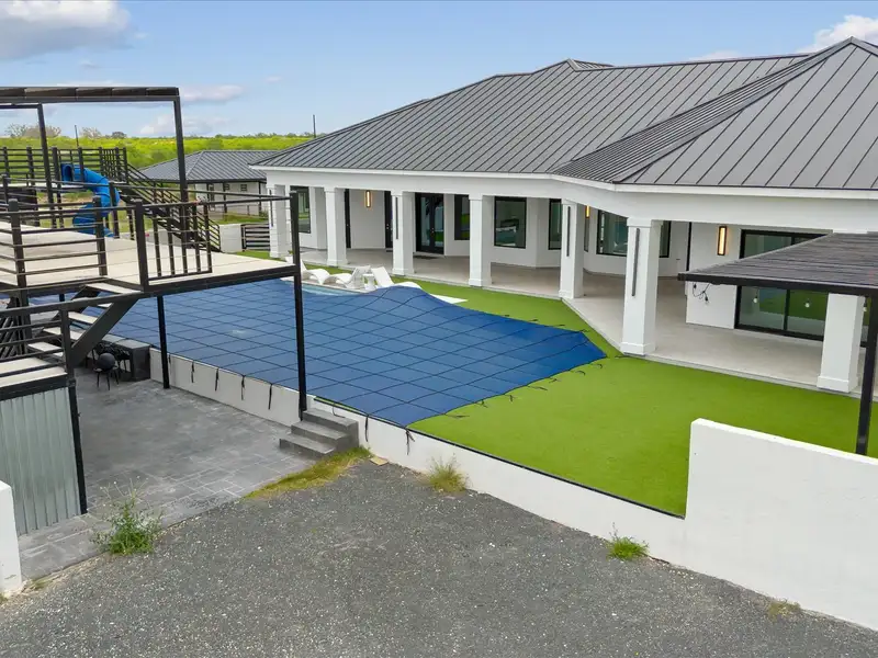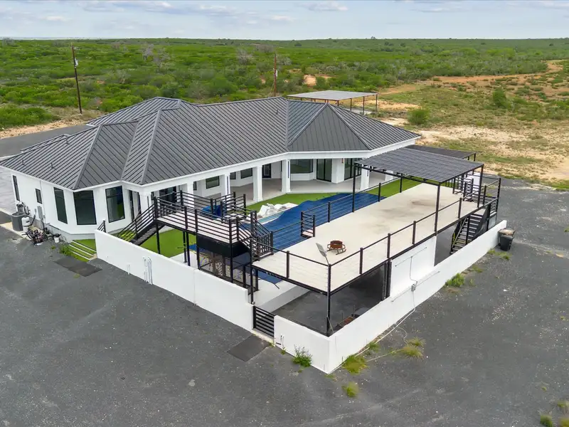 Welcome to 1799 County Road 651 in Devine, Texas, a breathtaking, fully fenced private estate on 30.85 ag-exempt acres that blends luxury living with serene country charm. Built in 2021, this 3,818 sq ft main residence offers 4 spacious bedrooms and 4.5 elegantly appointed bathrooms, designed for both refined living and effortless entertaining. Step through the gated entrance and feel the exclusivity immediately. Inside, high ceilings, natural light, and an open-concept layout flow into the chef's kitchen and cozy living areas. Each bedroom includes an en-suite, offering privacy and convenience for family or guests. Outside is where the magic unfolds to your very own resort-style oasis with a custom pool, complete with slide, diving board, and fire features. Host from the expansive two-story deck, take in the sweeping countryside views, and enjoy unforgettable gatherings under Texas skies. The property also includes a beautifully designed 924 sq ft guest home with 2 bedrooms and 1 full bath, ideal for multigenerational living, income potential, or guest accommodations. - 12/9/2025 3:15:24 AM