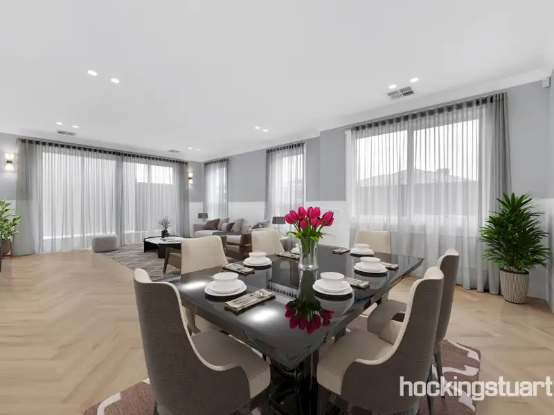 - Open-plan living and dining area