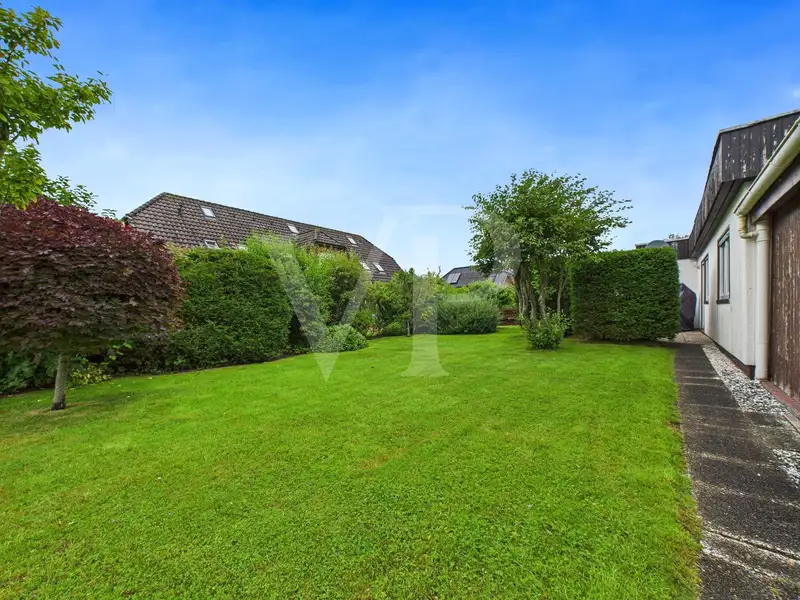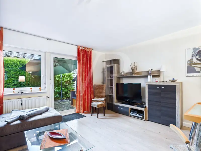 To the left is the well-kept, brightly tiled bathroom with all the necessary sanitary facilities. The underfloor heating here and the towel radiator ensure efficient heating, providing quick warmth and keeping the room at a pleasant temperature at all times. The two well-designed bedrooms can also be reached via the hallway. They offer enough space for beds, wardrobes or a desk and are ideal as bedrooms, guest rooms or studies. The cozy living room with a view of the garden forms the heart of the house. From here you have direct access to the sunny terrace, an ideal place to relax, barbecue or enjoy a cozy get-together. The living room also has a possible fireplace connection.