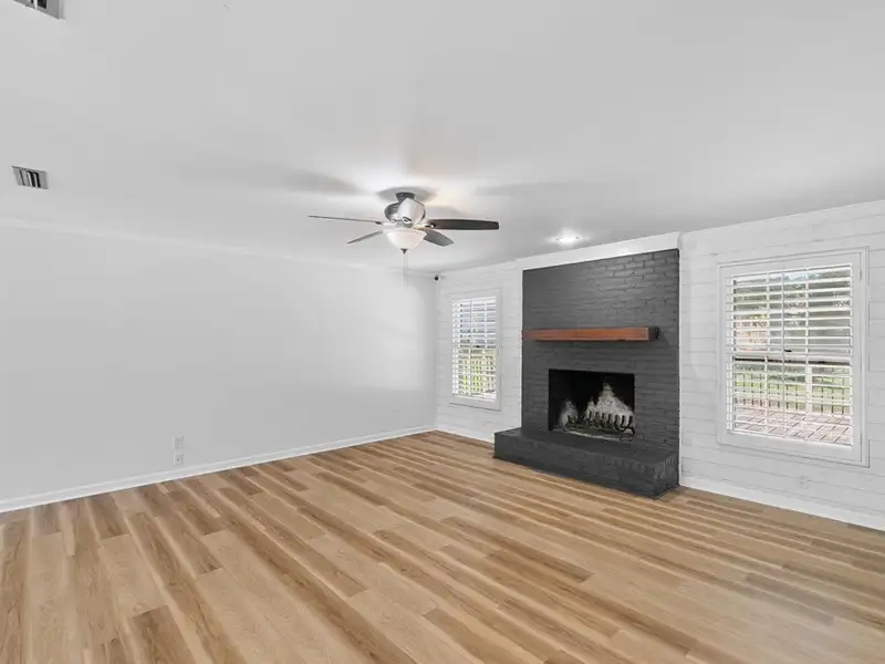 - Cozy brick fireplace in living area