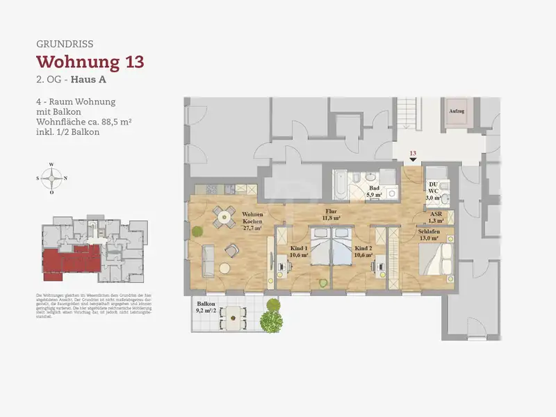 For sale is a modern apartment (No. 13, House A) on the second floor of an apartment building that will be completed in 2026 and is currently still under construction. With a total living space of approx. 88.5 m², this property offers ideal conditions for a family or couples who value contemporary living in an urban location.
