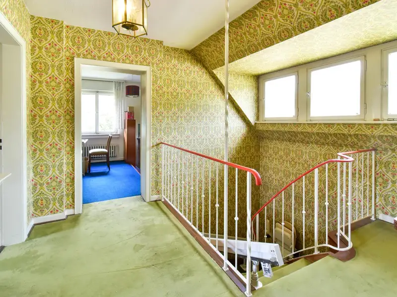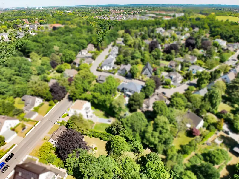 This property is situated in a prime location in the prestigious "Am Heidberg" residential area in the south of Duisburg. On a generous plot of around 1275 m², it offers the opportunity to realize a unique building project. The surrounding area is characterized by mature properties with a special atmosphere, which is protected by the development plan in order to avoid overly dense development and to preserve the character of the district.