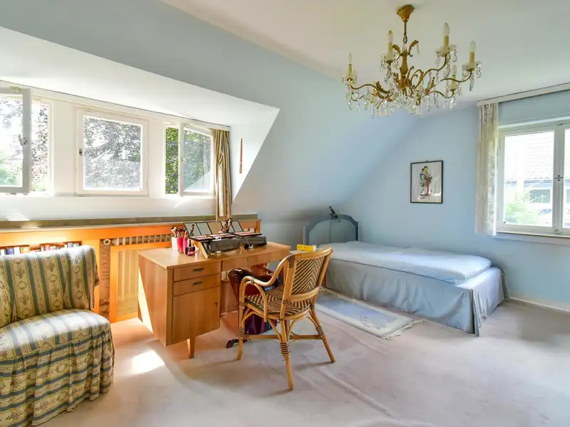 In summary, this property and its attractive plot in the sought-after villa district "Am Heidberg" offer a unique opportunity to realize an individual residential project. The existing old stock can either be preserved and modernized or completely redesigned to create a home entirely according to your own ideas. The combination of an excellent location, extensive plot area and proximity to renowned educational institutions makes this offer a rare opportunity on the real estate market.