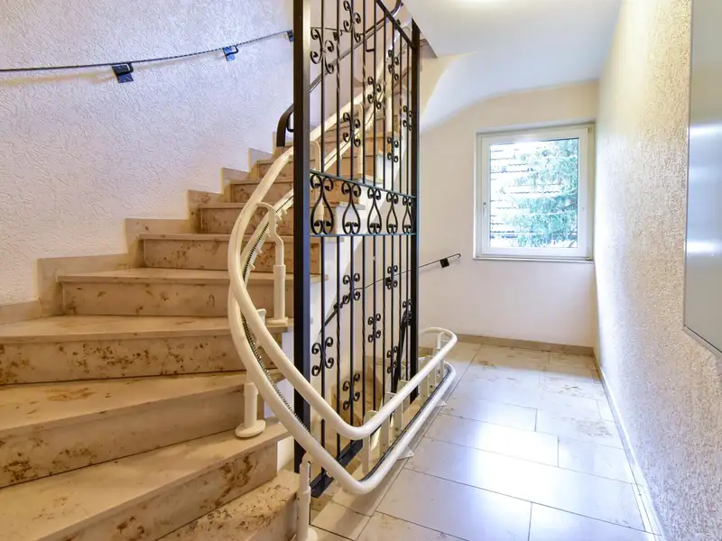 A stair lift in the hallway and the overall barrier-free design of the apartment offer additional comfort and make it easier to use, even in old age or with limited mobility. The permanently allocated optional parking space directly at the building rounds off the offer.