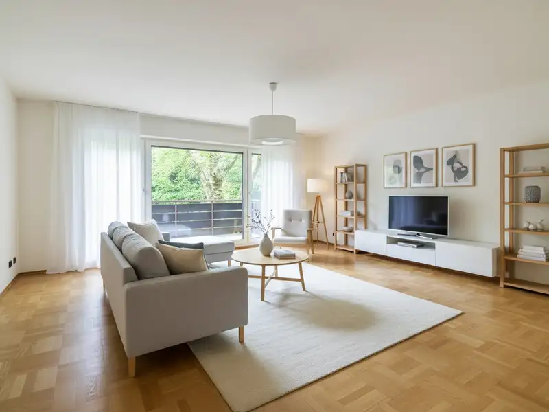 Even the entrance area welcomes you with generosity and offers enough space for a wardrobe or additional furniture. The apartment is well laid out throughout and impresses with its clear structure and brightness.