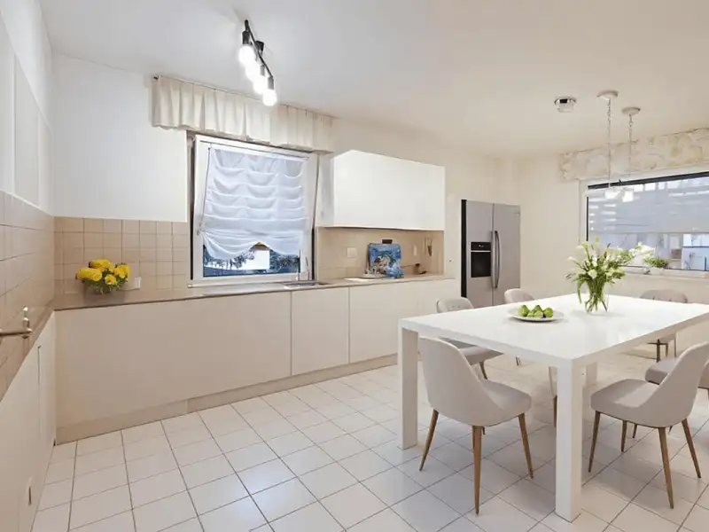 The separate kitchen is a real highlight: it offers enough space for an individually planned fitted kitchen and also a large dining table - ideal for combining cooking and eating in style without having to forego a separate living area.