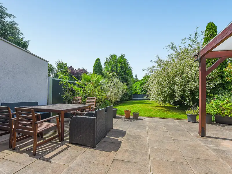 - Extended, partially covered terrace with awning