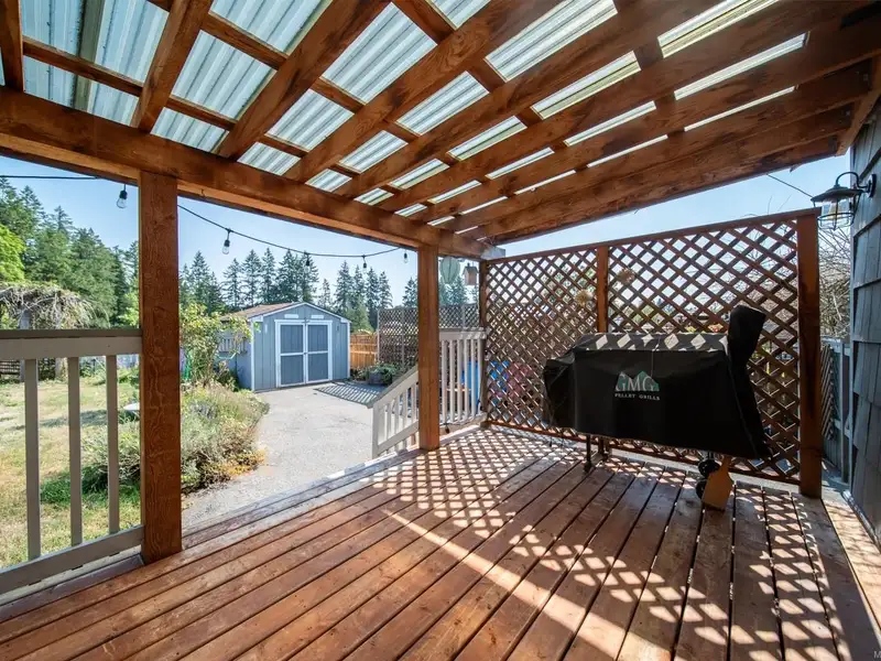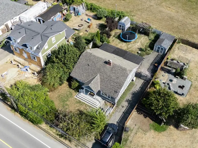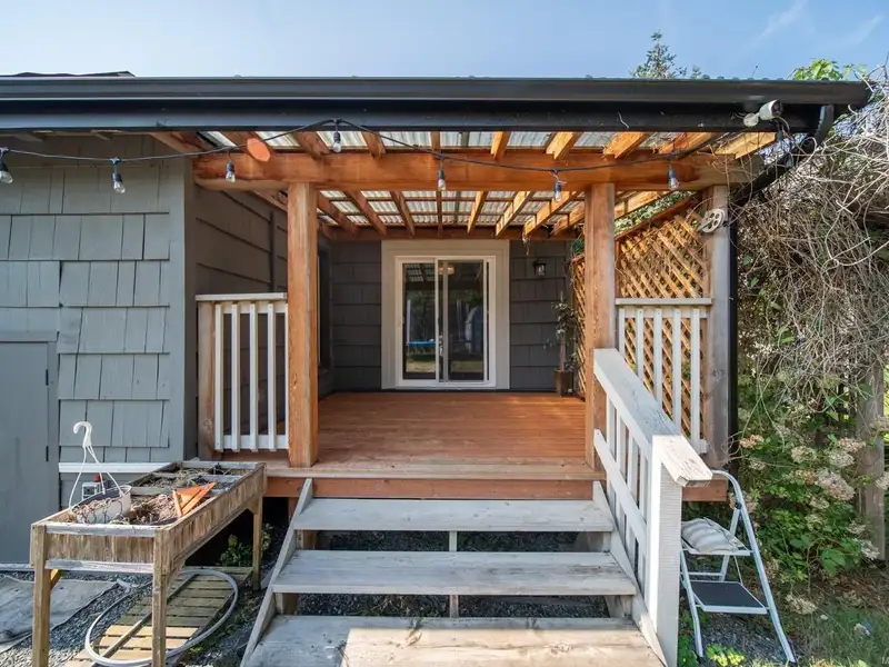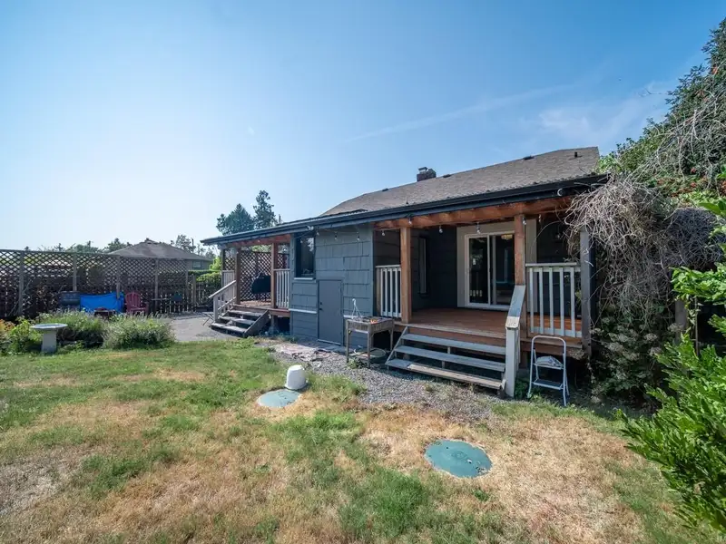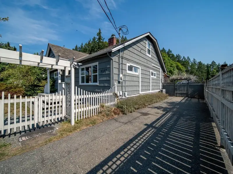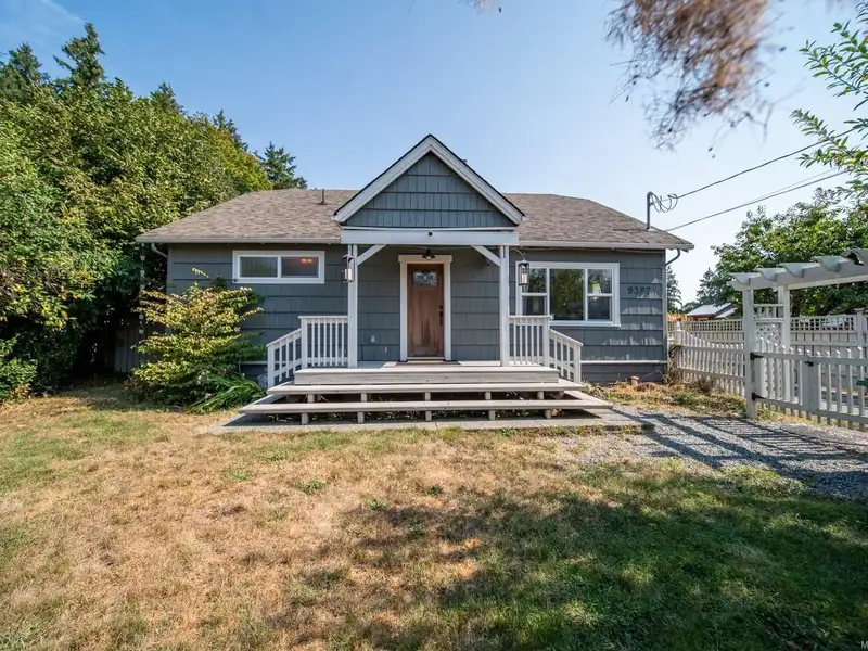 Welcome to 9387 Chemainus Road, a charming 3-bedroom, 1-bath home on a spacious 7,405 sq ft lot backing onto a private acreage for a peaceful setting. The inviting living room with a cozy gas fireplace flows into the bright kitchen with eating nook, leading to a sunroom and covered patio overlooking the large backyard. A 4-piece bath with soaker tub, office area, and primary bedroom with its own covered patio complete the main floor. Upstairs offers two bedrooms and an electric fireplace for warmth and character. Outside, enjoy a detached workshop and ample space for hobbies or storage. With multiple patio areas, a generous yard, and backing onto nature, this property is perfect for those who value indoor-outdoor living. Efficiently heated and cooled with a heat pump, this home combines comfort, charm, and privacy in the heart of Chemainus.