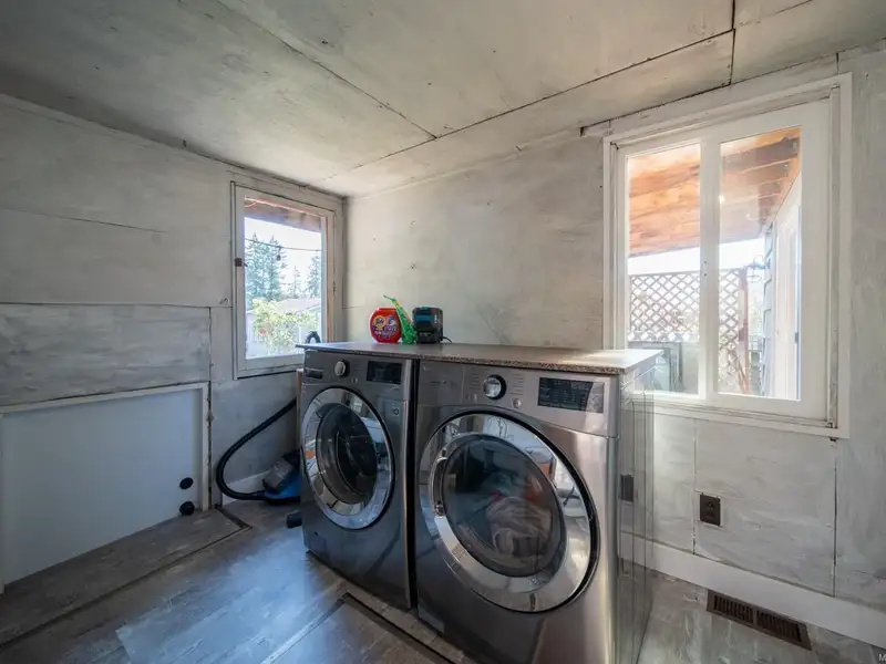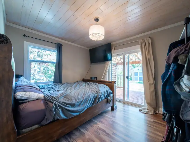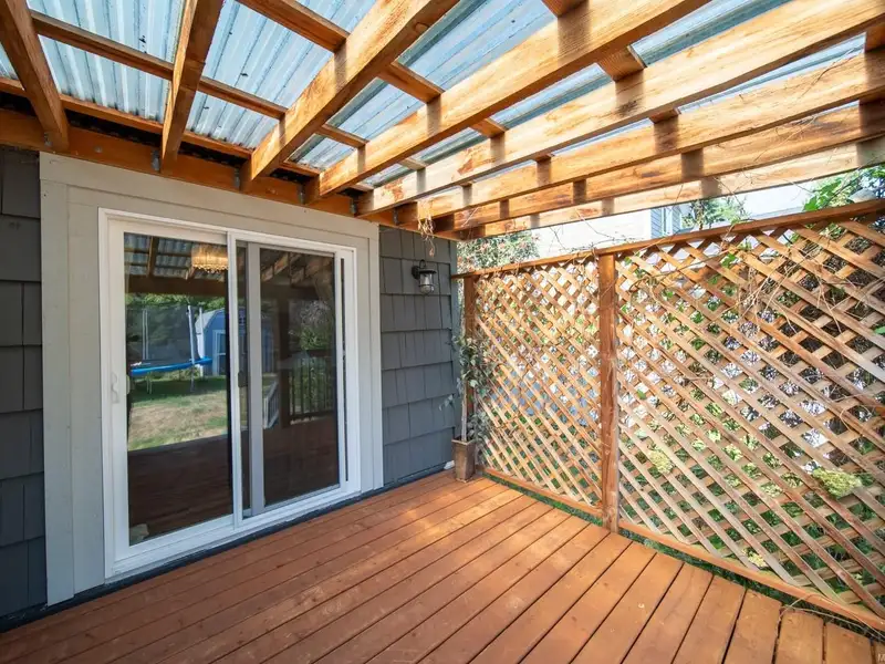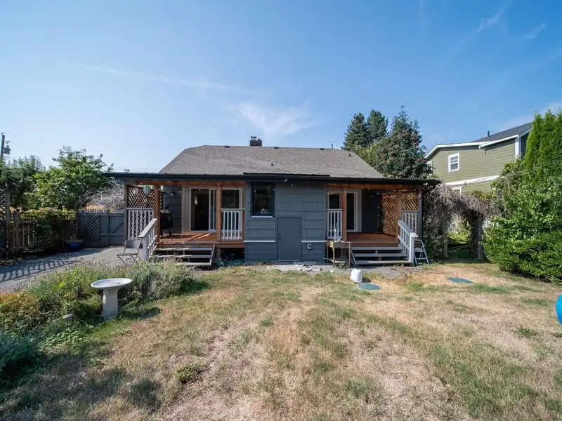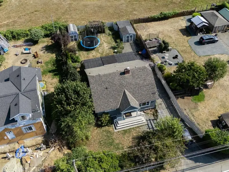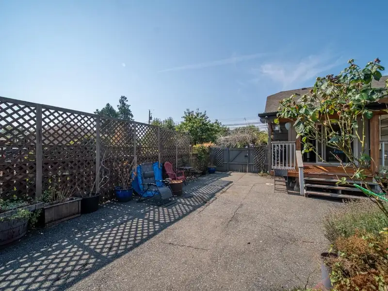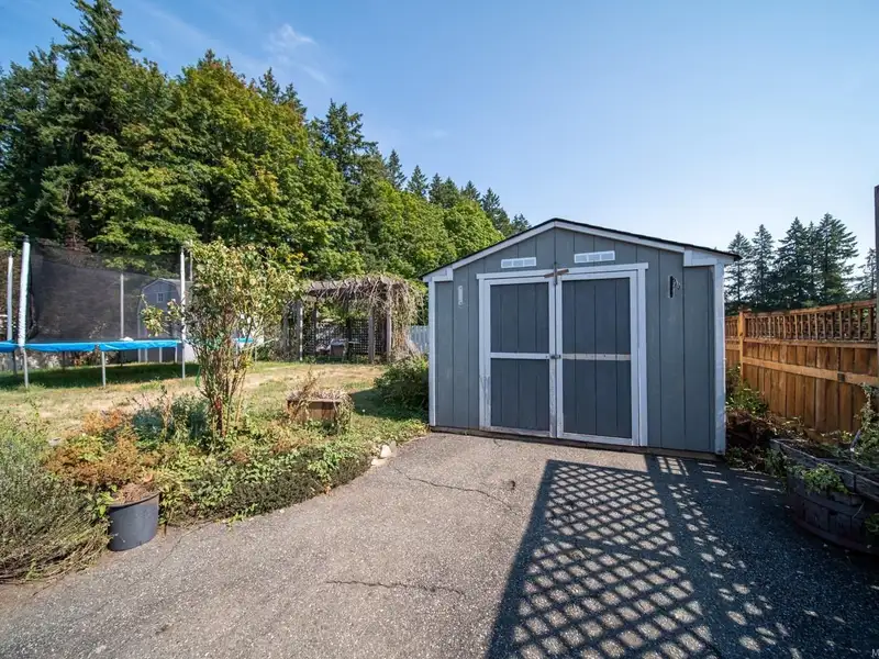 Welcome to 9387 Chemainus Road, a charming 3-bedroom, 1-bath home on a spacious 7,405 sq ft lot backing onto a private acreage for a peaceful setting. The inviting living room with a cozy gas fireplace flows into the bright kitchen with eating nook, leading to a sunroom and covered patio overlooking the large backyard. A 4-piece bath with soaker tub, office area, and primary bedroom with its own covered patio complete the main floor. Upstairs offers two bedrooms and an electric fireplace for warmth and character. Outside, enjoy a detached workshop and ample space for hobbies or storage. With multiple patio areas, a generous yard, and backing onto nature, this property is perfect for those who value indoor-outdoor living. Efficiently heated and cooled with a heat pump, this home combines comfort, charm, and privacy in the heart of Chemainus.
