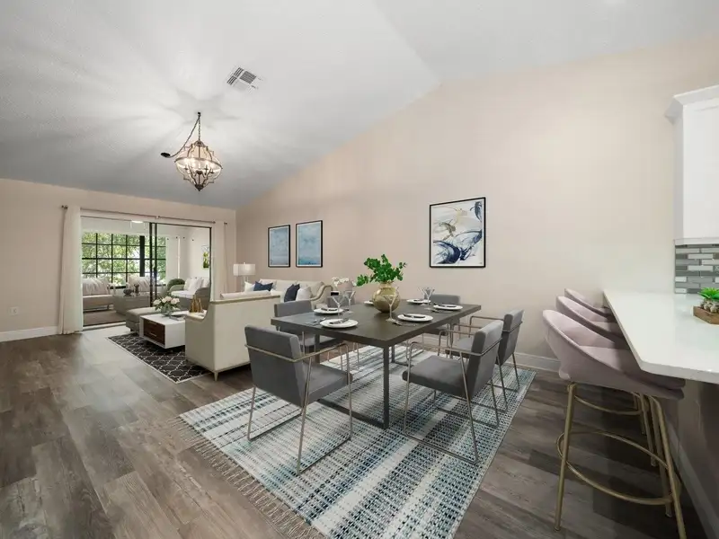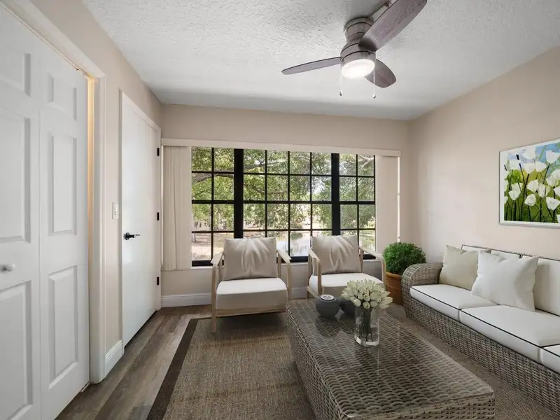 One or more photo(s) has been virtually staged. Completely Remodeled with NEW A/C & NEW HOT WATER TANK! At 63 feet above sea level, this condo is NOT IN A FLOOD ZONE. Nestled within the serene community of Forest Park Condos in highly sought after Dunedin, this pristine, completely updated condo offers the perfect blend of luxury, comfort, and convenience. A meticulously maintained unit, this stunning condo boasts 2 bedrooms, and 2 baths, with assigned carport parking, soaring 12-foot vaulted ceilings, and an enclosed sunroom with tranquil and park-like lake views.