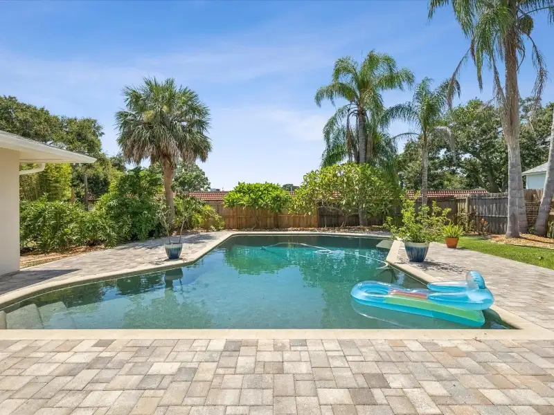 Welcome to your slice of Dunedin paradise! This beautifully updated 3-bedroom, 2-bath pool home perfectly blends Florida charm with modern comfort—nestled in one of Dunedin’s most desirable golf cart-friendly neighborhoods. Step inside to find 1,832 sq ft of bright, open living space with a split-bedroom layout for privacy. The primary suite opens directly to the pool—ideal for a morning swim or a quiet evening retreat. Acacia hardwood floors, a cozy family room with fireplace, and sliding doors from multiple rooms create effortless indoor/outdoor living. Your backyard is pure resort living. The massive 20' x 30' saltwater Pebble Tec pool with a 10-ft deep end invites you to relax and unwind every day. Surrounded by a fully fenced yard, firepit area, and glowing sunset views, it feels like being on vacation in your own backyard. Enjoy peace of mind with major recent upgrades: New roof (2024) Impact windows (2021) Hurricane-rated garage door (2024) Updated electrical panels (home & pool 2022) New water heater (2025) New saltwater system, variable-speed pump & filter (2024) Additional enhancements include fresh interior and exterior paint, updated lighting and fans, and smooth retextured ceilings—no popcorn here! High and dry—no flood or evacuation zone. Cruise your golf cart to downtown Dunedin’s restaurants, boutiques, and year-round festivals, or head to Honeymoon Island, the Pinellas Trail, or the revitalized Dunedin Golf & Country Club just minutes away. Come experience why Southern Living named Dunedin “The Hidden Florida Getaway That Should Be On Your Radar.” Your vacation lifestyle starts here—schedule your private tour today!