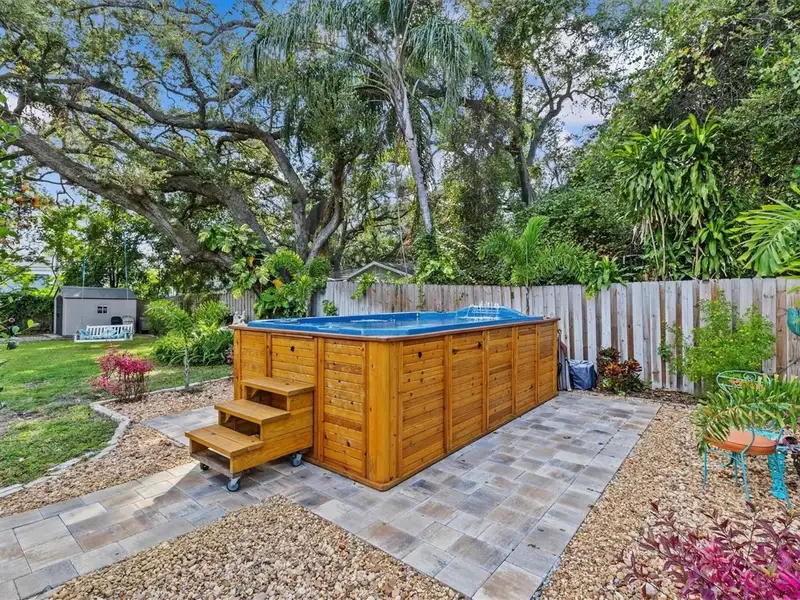 - Private backyard with heated spa