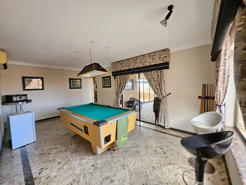For the entertainment connoisseur, a dedicated entertainment room invites you with the promise of rousing games on the snooker table. Stackable doors open up to an irresistible salt water swimming pool area with rock features, built in braai and landscaped gardens where countless memories will surely be made.