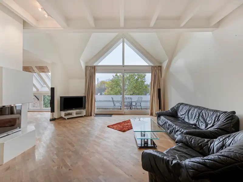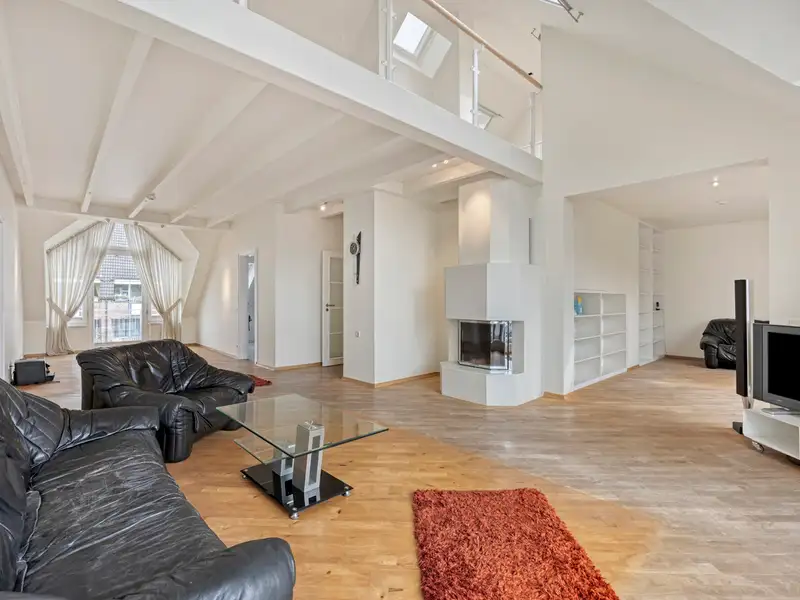 - Spacious living area with open fireplace
