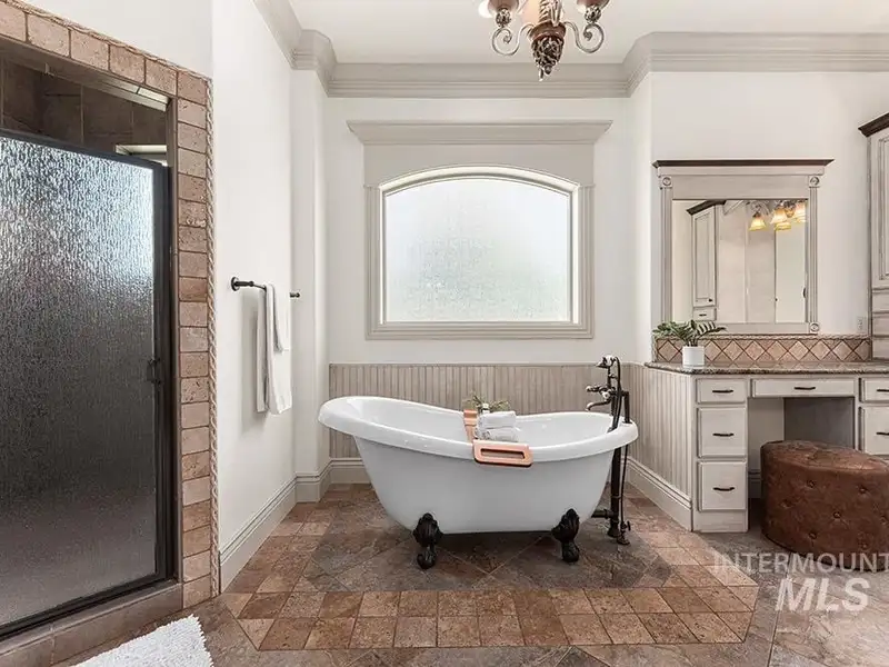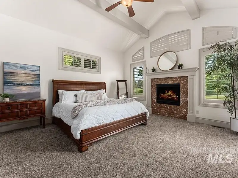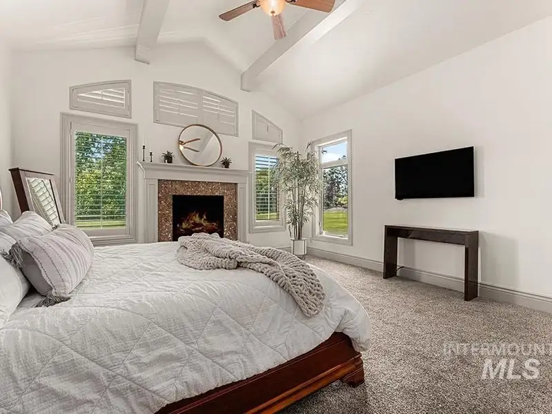 - Main-level master with fireplace, tub
