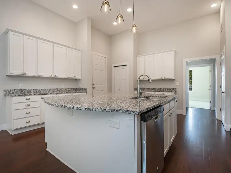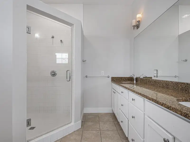 - Granite countertops and white cabinetry
