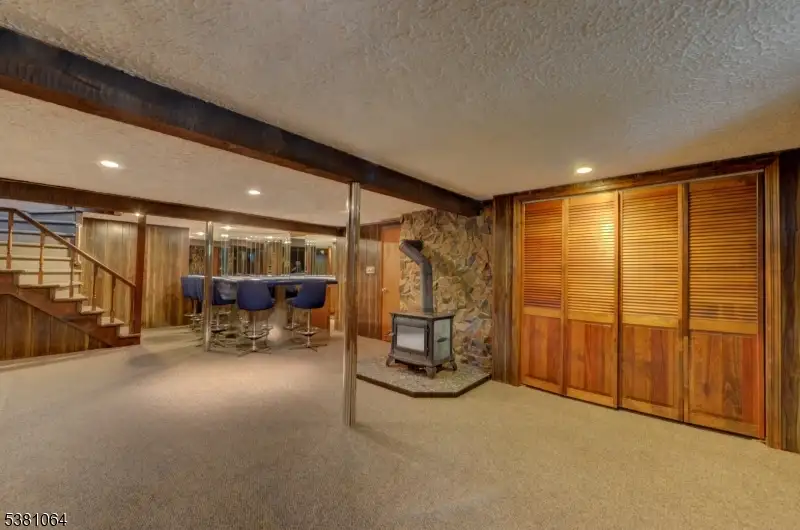 - Family room with wet bar and wood stove