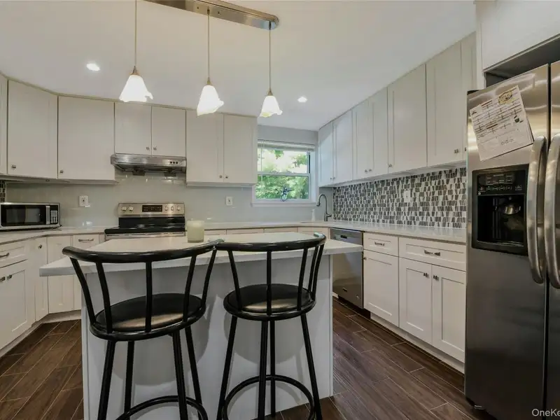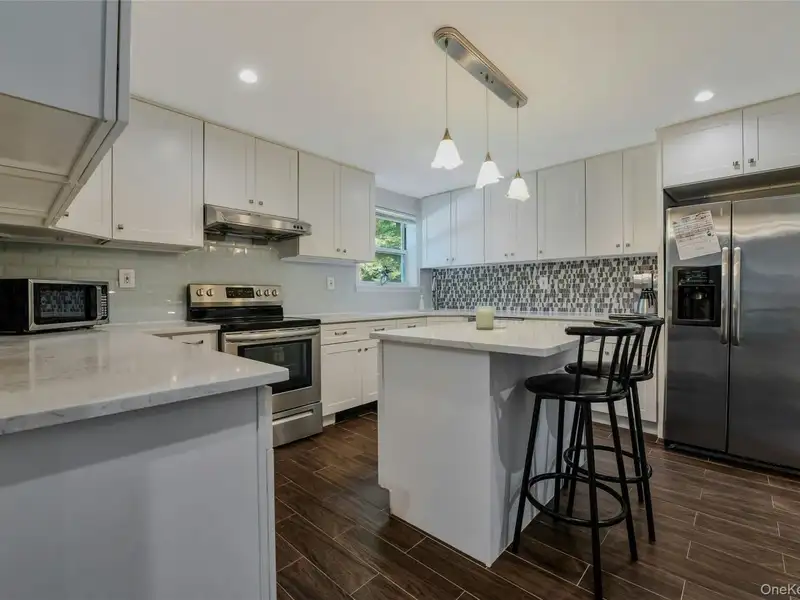 - Renovated colonial-inspired hi-ranch home