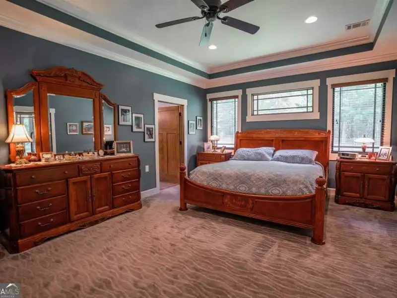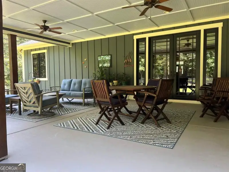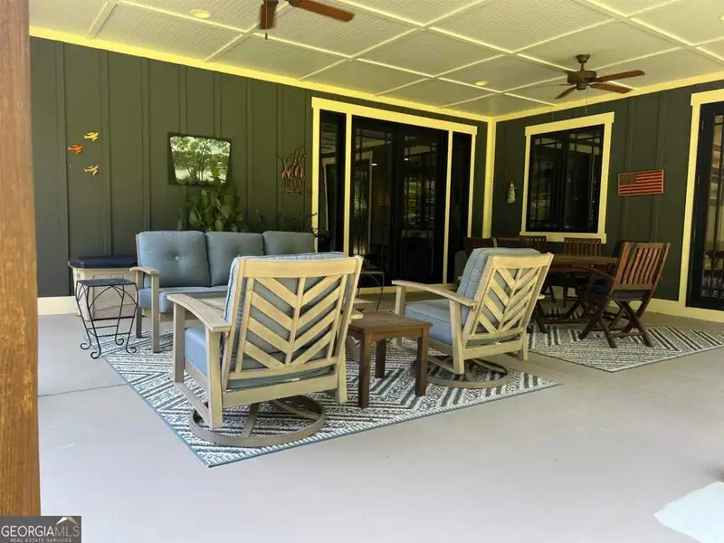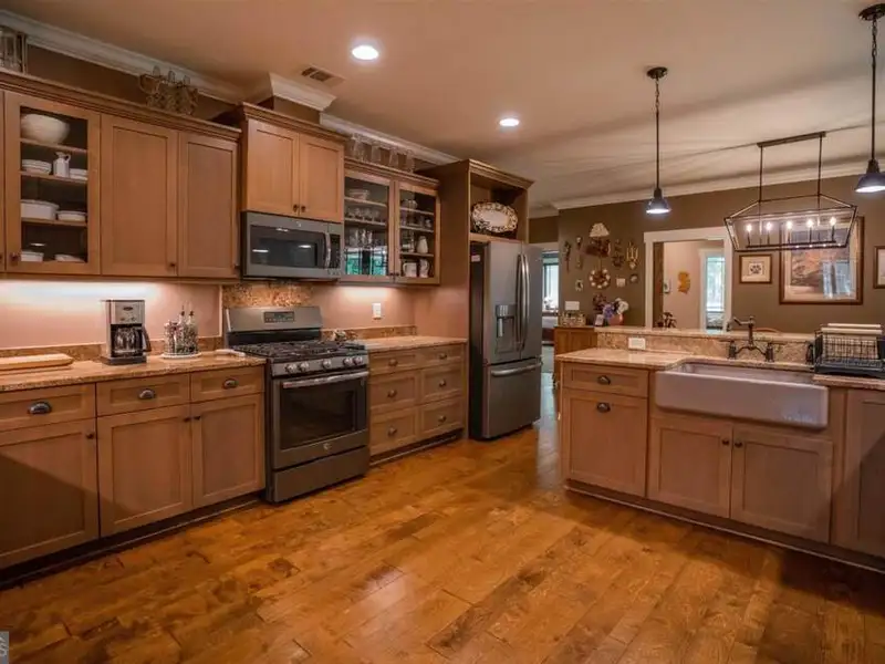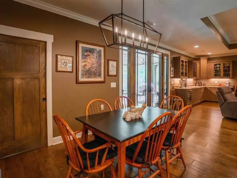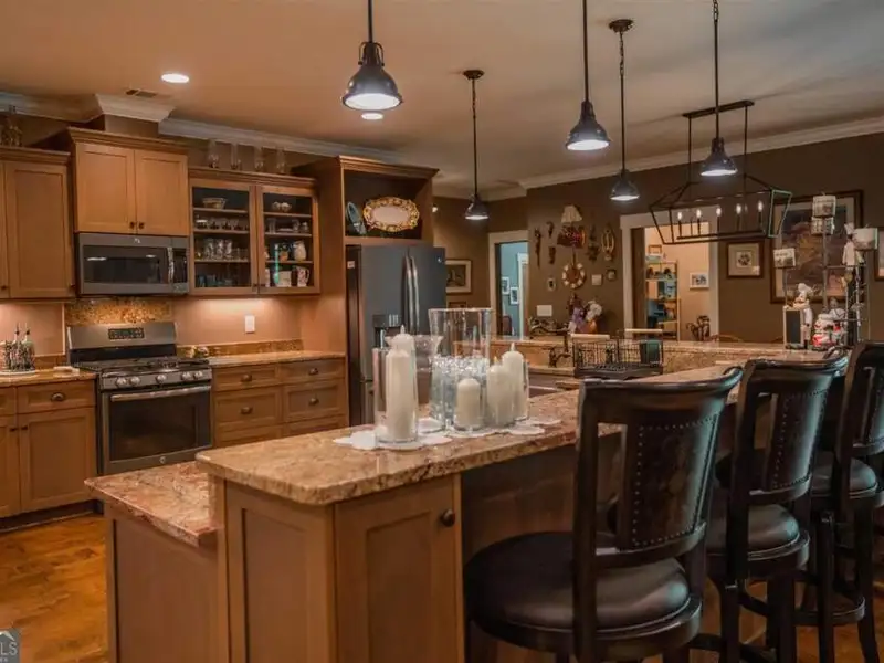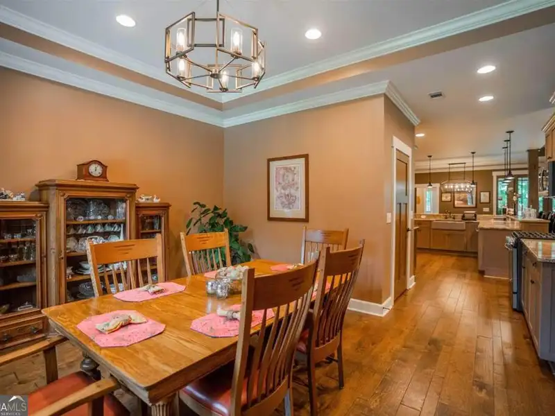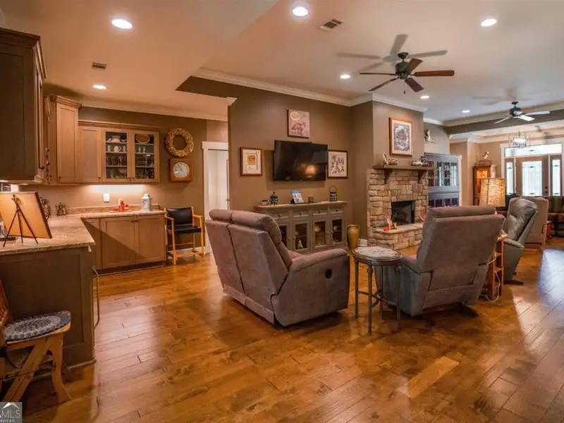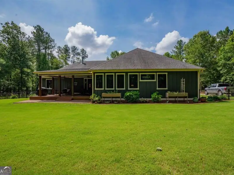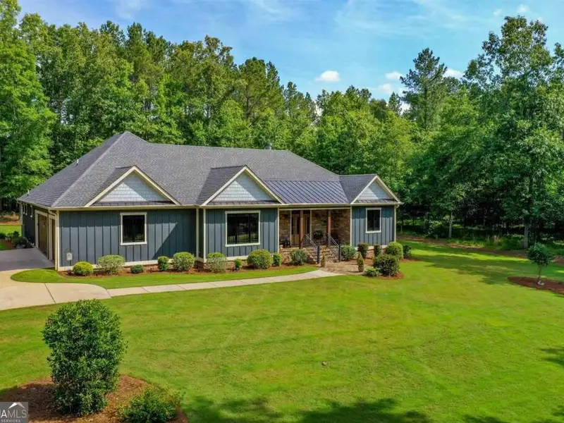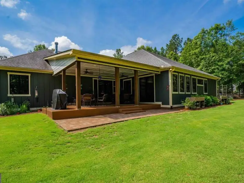Welcome home to this stunning custom-built one-story located on 2.5 acres with beautiful views of Lake Sinclair! This open-concept home features 3,150+ square feet and a tranquil setting perfect for outdoor living. The curb appeal is exceptional, enhanced by professional landscaping that beautifies every corner of the property. Upon entering, you'll find a spacious living room with a stacked stone fireplace, a large dining area that can comfortably seat a table for 12 or more, and a dream kitchen with a wrap-around breakfast bar. The chef's kitchen is a true highlight, featuring two cooking stations, each with its gas range/oven and microwave, as well as dedicated cooking spaces. It includes granite countertops, custom cabinets with pull-out drawers and organizers, and a sizable walk-in pantry. This 3-bedroom, 3-bathroom home is handicap accessible, with wide entry doors throughout. The primary ensuite offers a walk-in tiled shower, a large walk-in closet, and private access to the sunroom and spacious outdoor covered patio. Two additional en-suites are located on the opposite side of the house for optimal privacy. An office and a laundry room, equipped with a utility sink and an extra refrigerator, complete this thoughtfully designed floor plan. The beautiful, solid wood doors match the hardwood flooring that flows through the main living areas. The low-maintenance, energy-efficient sun casement windows and doors enhance the exterior, finished with durable Hardy board siding and trim. The property features a charming stone-clad entry porch with patio space for greeting guests, along with a large covered rear porch and an additional stone patio, ideal for entertaining. This energy-efficient home has an on-demand water heater, a fully spray-foamed attic for remarkably low utility bills, and a fenced backyard with three gates for easy access. The 3-car garage offers ample parking and storage, the crawl space is 4 feet high with poured concrete, and a separate storage shed with electricity will convey with the property. Crooked Creek Marina is conveniently located a few miles away, making lake access easy and enjoyable. Contact me today to schedule a viewing of this incredible property!