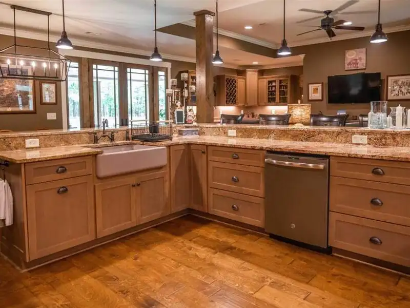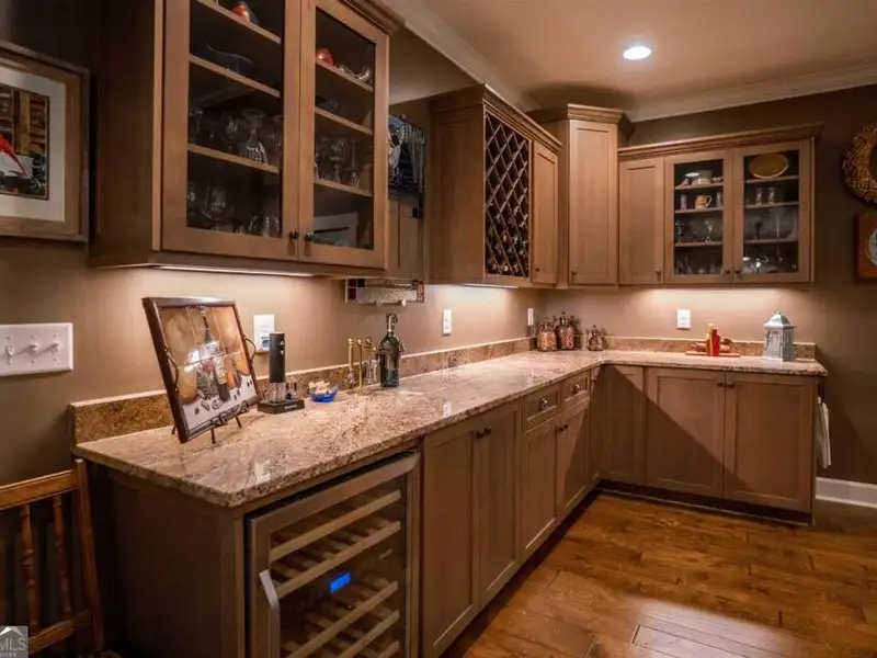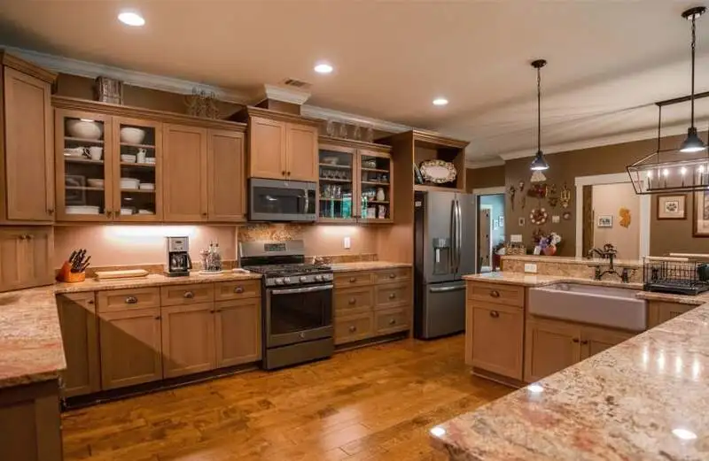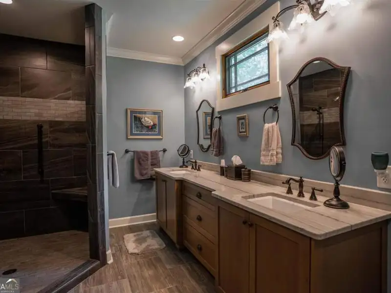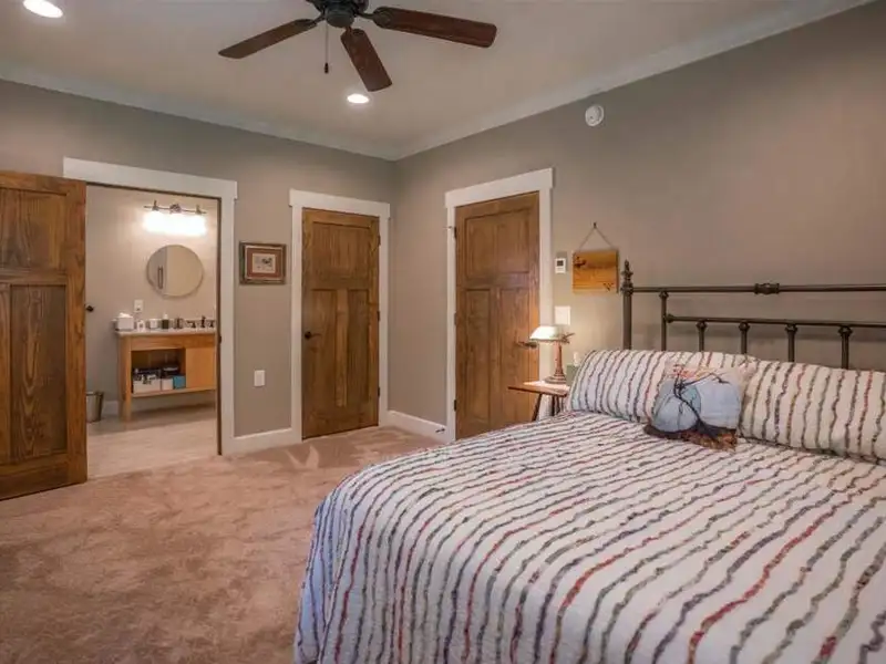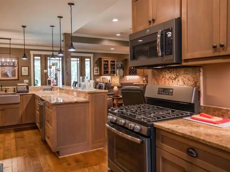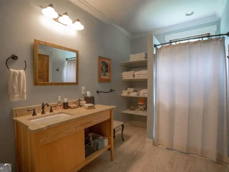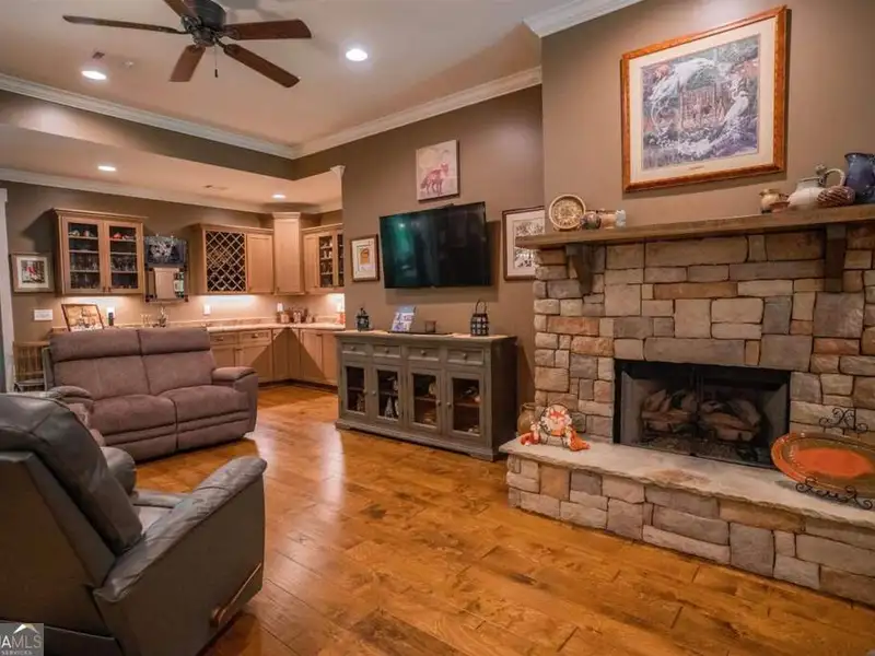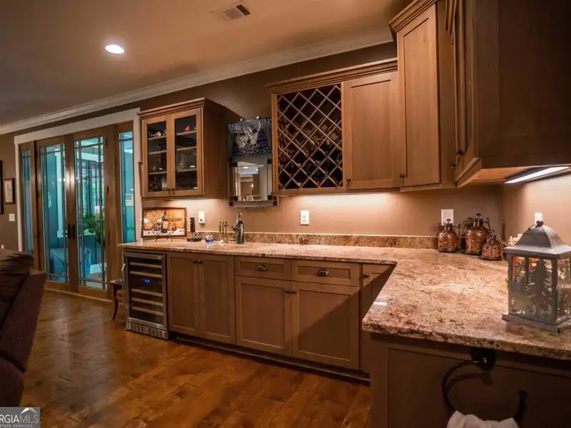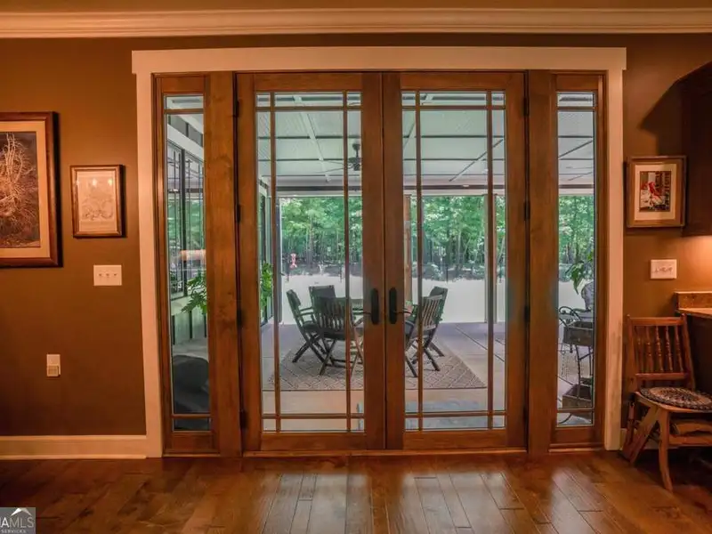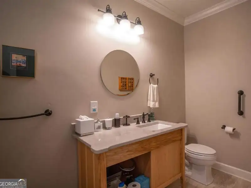 Welcome home to this stunning custom-built one-story located on 2.5 acres with beautiful views of Lake Sinclair! This open-concept home features 3,150+ square feet and a tranquil setting perfect for outdoor living. The curb appeal is exceptional, enhanced by professional landscaping that beautifies every corner of the property. Upon entering, you'll find a spacious living room with a stacked stone fireplace, a large dining area that can comfortably seat a table for 12 or more, and a dream kitchen with a wrap-around breakfast bar. The chef's kitchen is a true highlight, featuring two cooking stations, each with its gas range/oven and microwave, as well as dedicated cooking spaces. It includes granite countertops, custom cabinets with pull-out drawers and organizers, and a sizable walk-in pantry. This 3-bedroom, 3-bathroom home is handicap accessible, with wide entry doors throughout. The primary ensuite offers a walk-in tiled shower, a large walk-in closet, and private access to the sunroom and spacious outdoor covered patio. Two additional en-suites are located on the opposite side of the house for optimal privacy. An office and a laundry room, equipped with a utility sink and an extra refrigerator, complete this thoughtfully designed floor plan. The beautiful, solid wood doors match the hardwood flooring that flows through the main living areas. The low-maintenance, energy-efficient sun casement windows and doors enhance the exterior, finished with durable Hardy board siding and trim. The property features a charming stone-clad entry porch with patio space for greeting guests, along with a large covered rear porch and an additional stone patio, ideal for entertaining. This energy-efficient home has an on-demand water heater, a fully spray-foamed attic for remarkably low utility bills, and a fenced backyard with three gates for easy access. The 3-car garage offers ample parking and storage, the crawl space is 4 feet high with poured concrete, and a separate storage shed with electricity will convey with the property. Crooked Creek Marina is conveniently located a few miles away, making lake access easy and enjoyable. Contact me today to schedule a viewing of this incredible property!