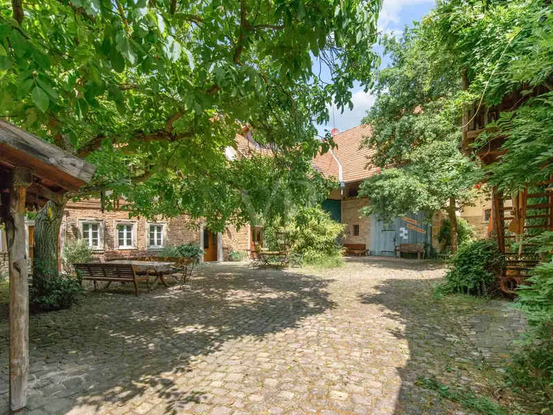 The property on offer here, in the form of a listed 3-sided farmhouse, combines Rhine-Hessian history with modernity as well as a high quality of living and working in a quiet yet very well connected location in an incomparable way.