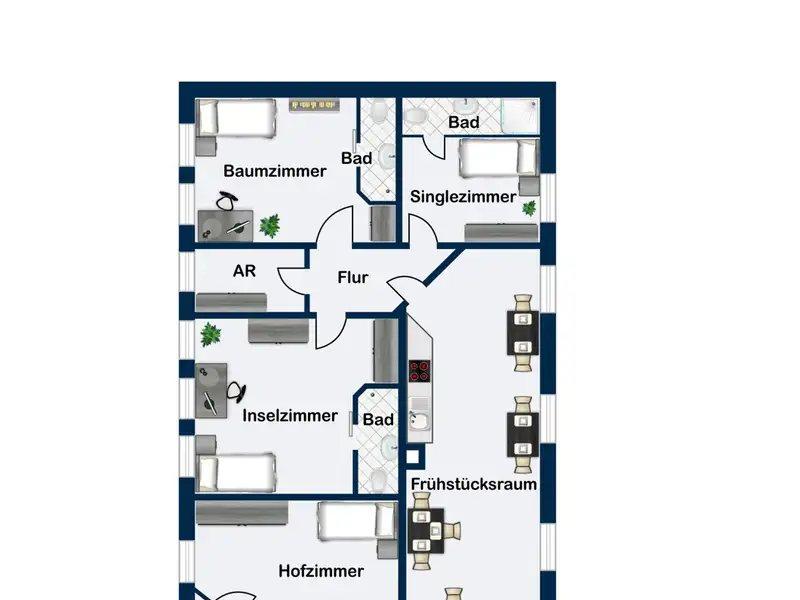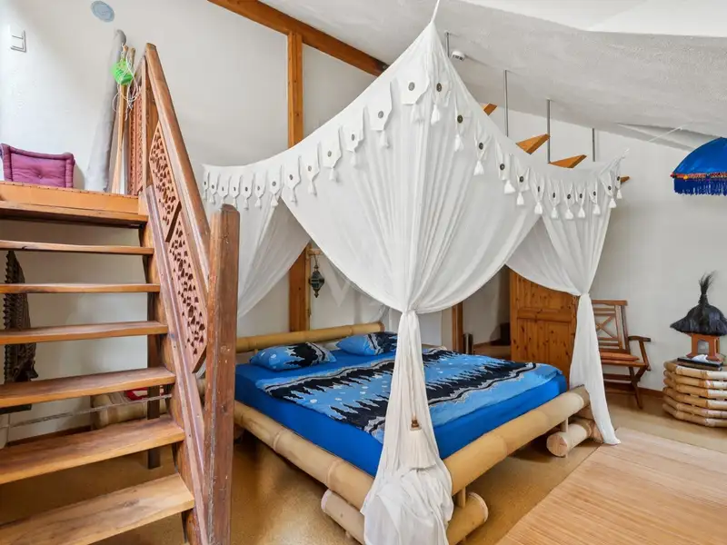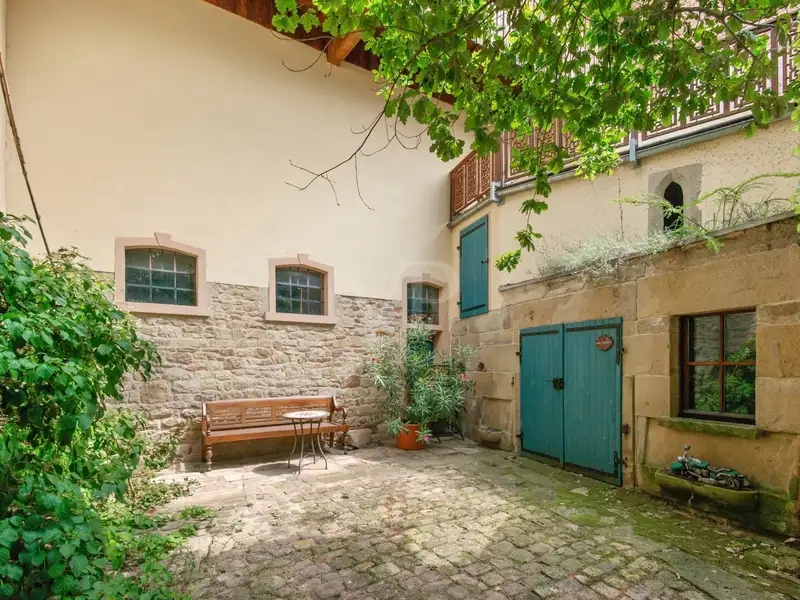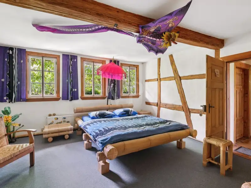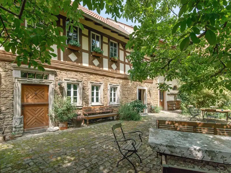 After entering the property through the archway into the cobblestone courtyard with its old trees, you immediately feel at ease, unseen and at home. It immediately slows you down from a stressful everyday life. Once you have found your way around, you will be surprised that such a courtyard and building ensemble, which has been renovated with so much attention to detail, refurbished and well maintained, is so inconspicuous in the middle of an old village center. The individual guest rooms and apartments are all individually designed and have an Asian touch and cultural elements.