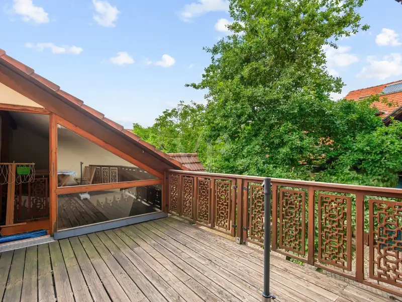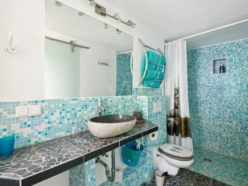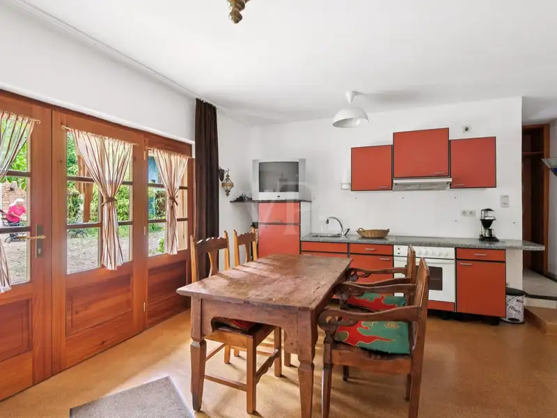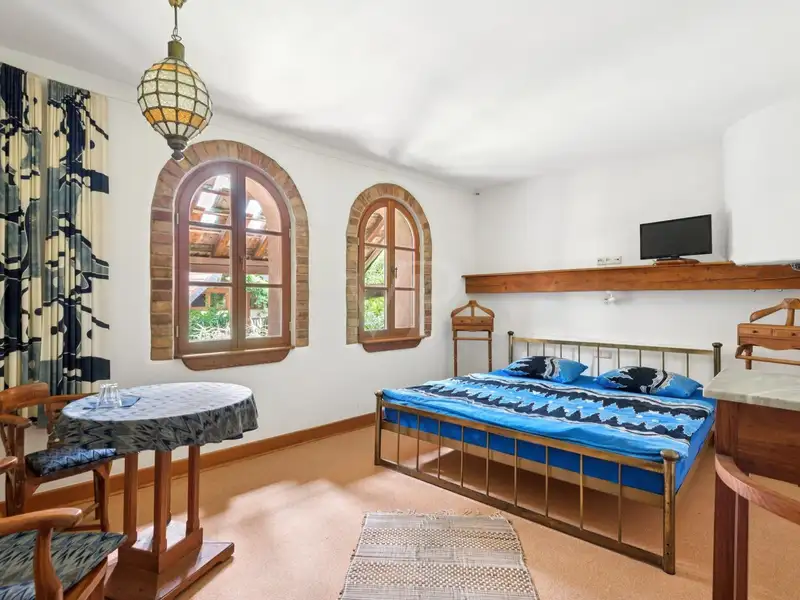 There is also an apartment building opposite in the courtyard with three apartments of different sizes, each equipped with a kitchenette, bathroom, dining and sleeping area. The top floor apartment also has a roof terrace. If this space is still not enough for you, the two adjoining barns offer plenty of scope for further expansion on the ground and top floors.