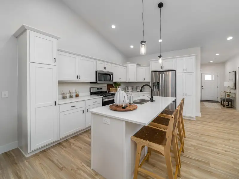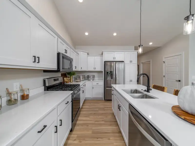 - Quartz countertops in kitchen