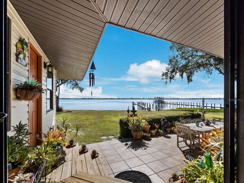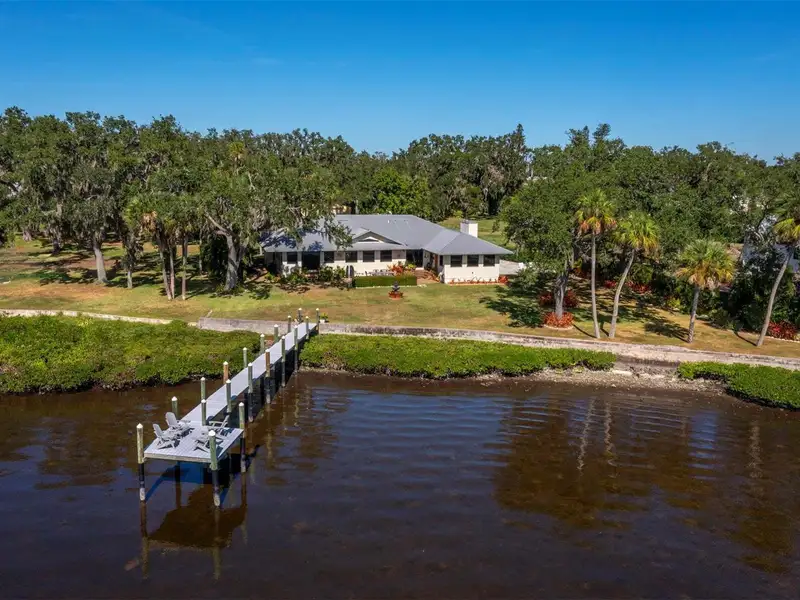 - Long dock with deck on riverfront