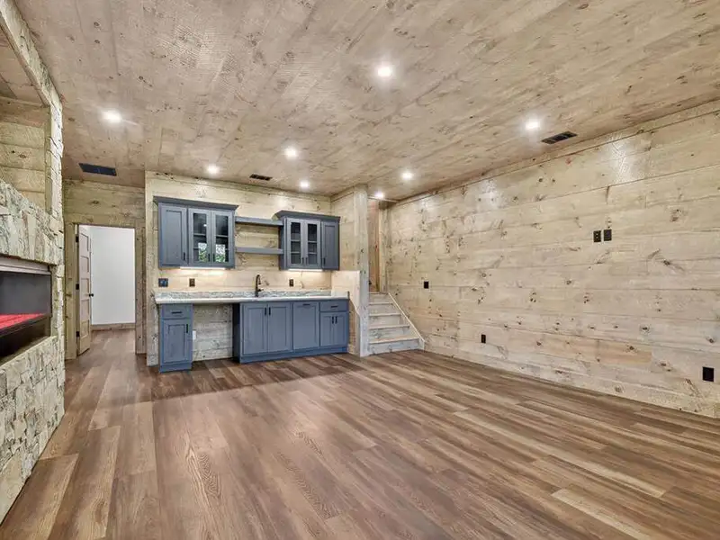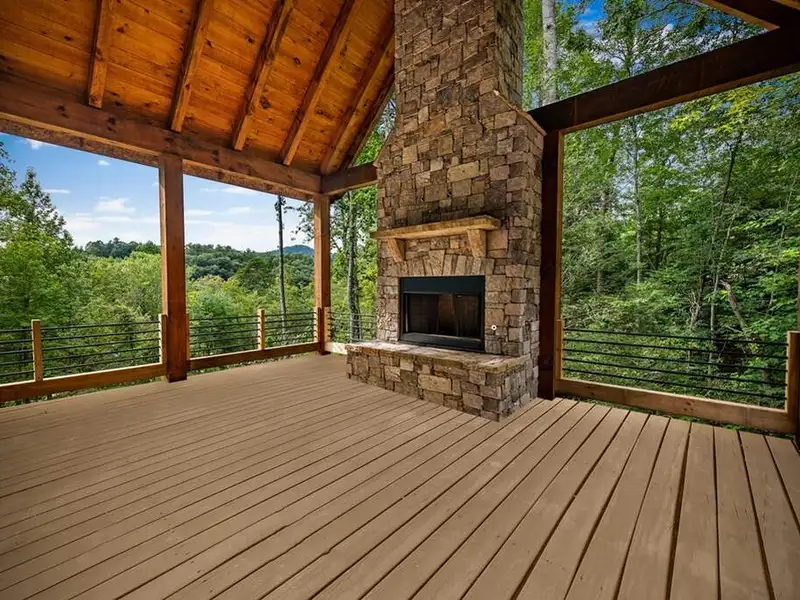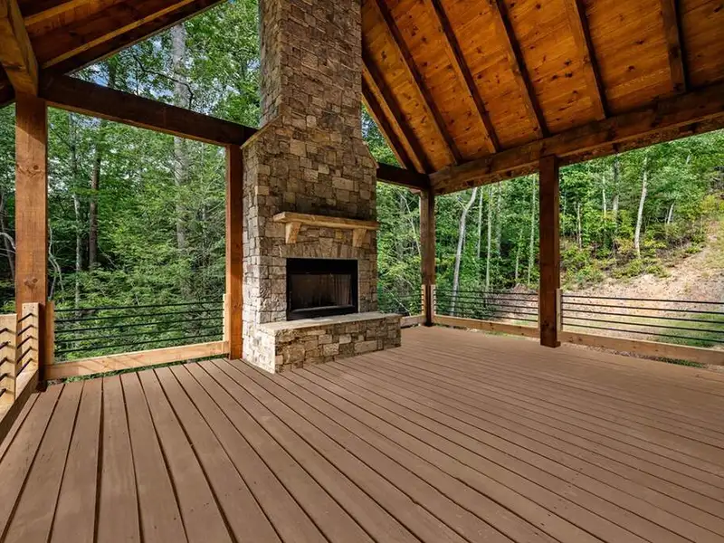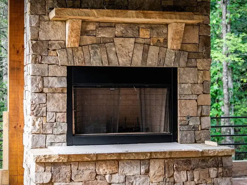 - Cozy stone outdoor fireplace