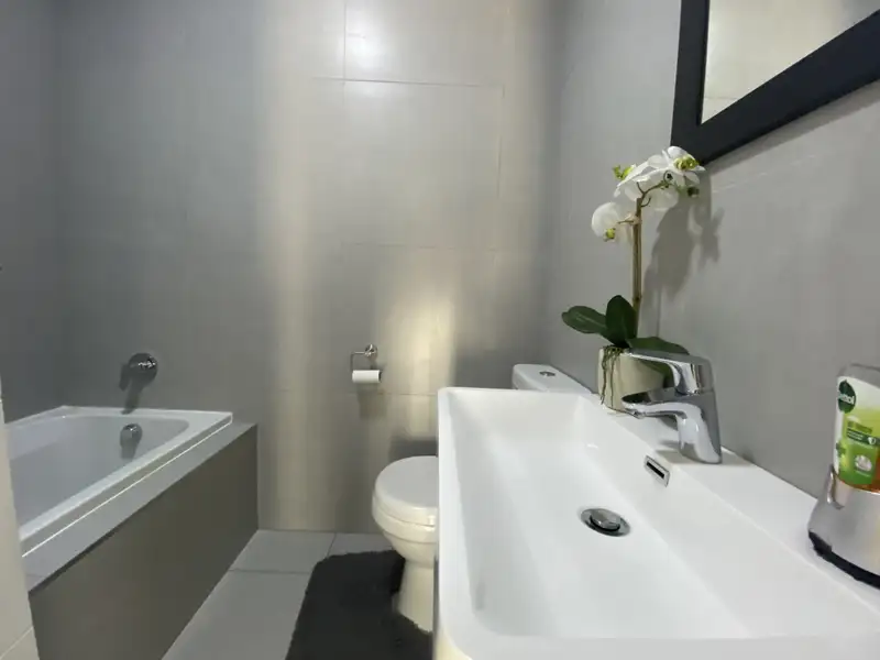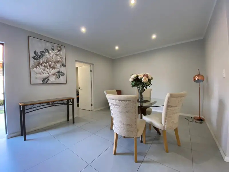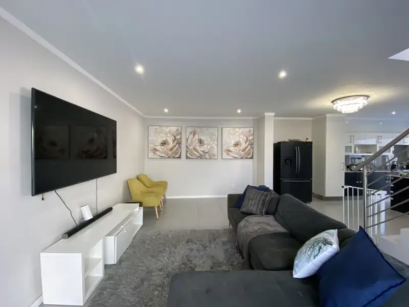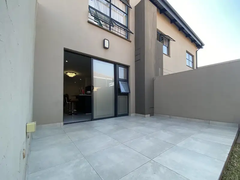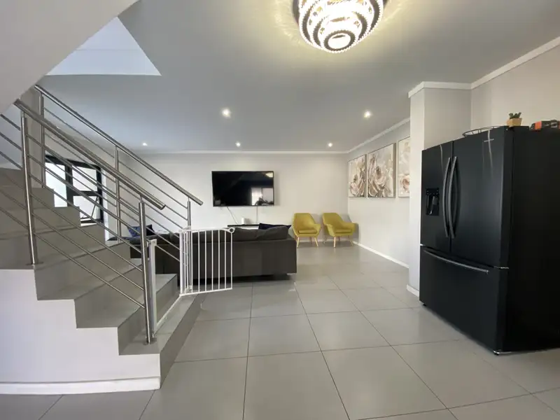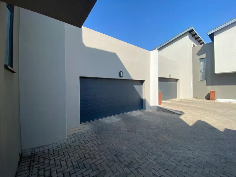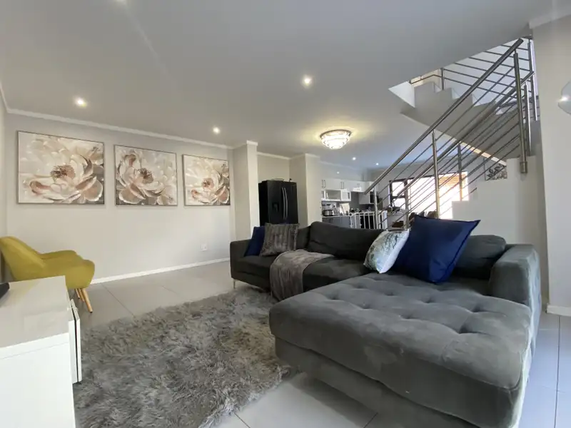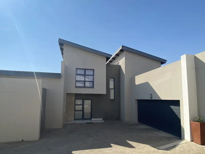 Discover the perfect blend of modern comfort and security in this inviting townhouse, tailored for young professionals and families alike. This stylish home is ideal for those who prefer the safety and security of estate living, whilst not compromising on privacy and space. Step into a world of easy living, where contemporary design meets luxurious space. Enjoy the seamless flow of the open plan living room, dining area, and kitchen, designed for both functionality and style. Direct access from the double automated garages ensures convenience, while a patio leading off the kitchen invites outdoor entertainment during the warmer months in a private garden setting. The kitchen, complete with a centre island and gas hob, boasts a separate scullery/laundry area with space for appliances. Upstairs, three generously sized bedrooms await, all equipped with ample built-in cupboards. The family bathroom features a bath, basin, and toilet, while the main en-suite offers a bath, shower, toilet, and basin. Located in popular Equestria area, this modern townhouse has easy access to main routes, highways, and a host of amenities, making it the ideal choice for those seeking a secure and comfortable lifestyle. Schedule your viewing today and envision the possibilities of calling this place home.