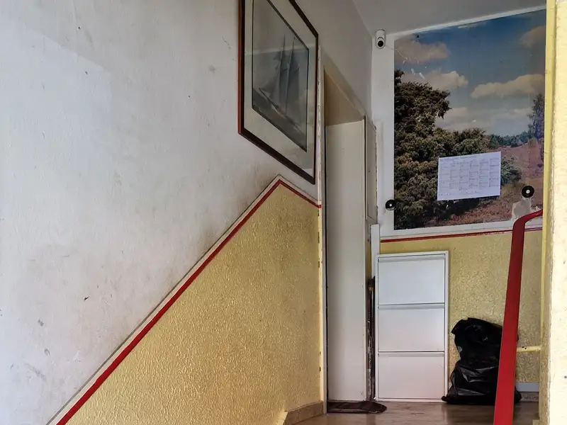The house comprises a total of 18 rooms, including 12 bedrooms and 6 bathrooms, spread over six residential units. The majority of the individual apartments consist of 3 rooms and are between approx. 50 m² and approx. 80 m² in size and are characterized by simple furnishings. The kitchens are owned by the tenants and are not included in the asking price. The cellar rooms belonging to the apartments provide additional storage space. There is also a shared laundry room and a party cellar for the tenants.