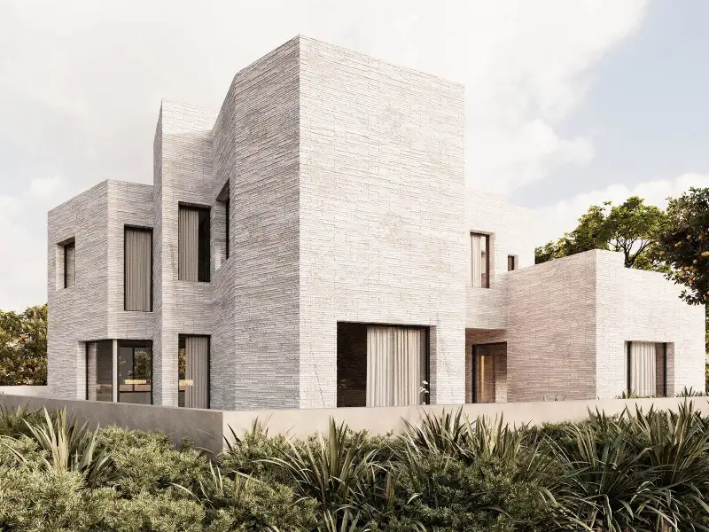 The price of the fully finished house is €3,450,000 and €2,950,000 without finishes.