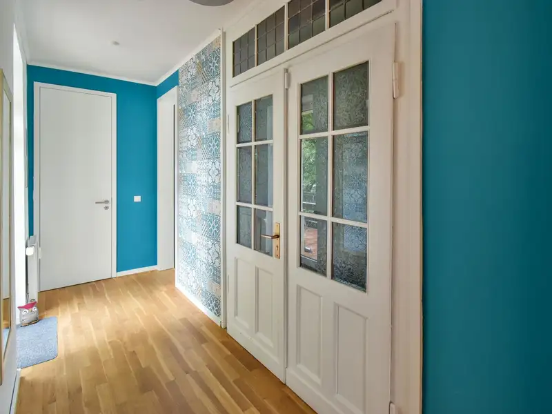 Enter the apartment and find yourself in the impressive hallway with an open-plan cooking and dining area. Here you will find a kitchen made to measure by a carpenter, equipped with high-quality materials and modern appliances that will make your culinary dreams come true. Whether cooking together or socializing in the evening - this room invites you to linger.