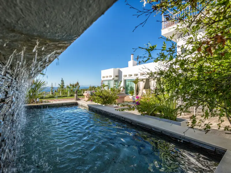 The mansion boasts three main living rooms, each with an exclusive design tailored to different moments of your day. Outside, you will enjoy an unparalleled experience: perfectly maintained Mediterranean gardens, a chill-out corner with a waterfall, barbecue area, tropical pathways, an olive garden, and even a space prepared for a helipad.