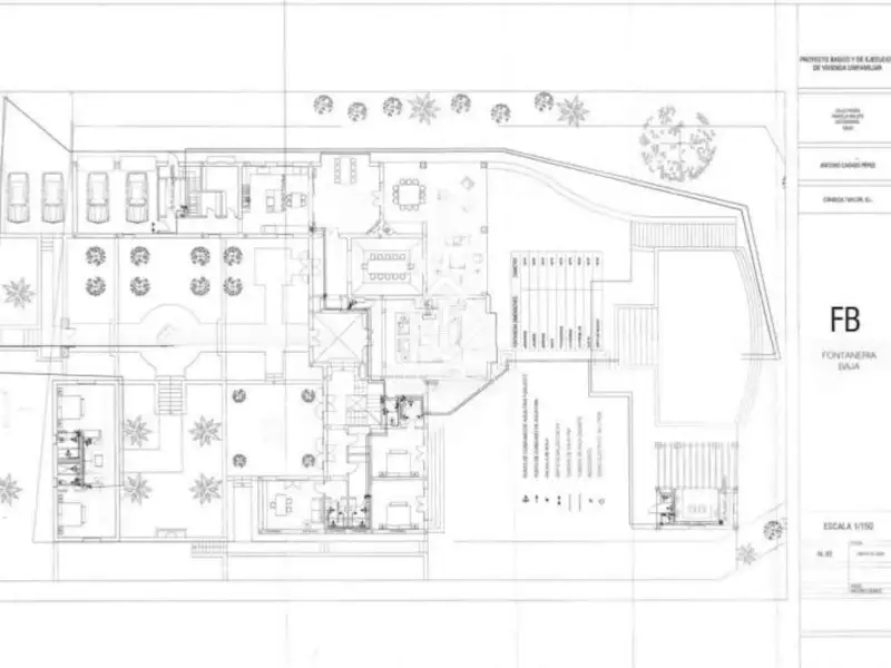 - Large garden with palm trees