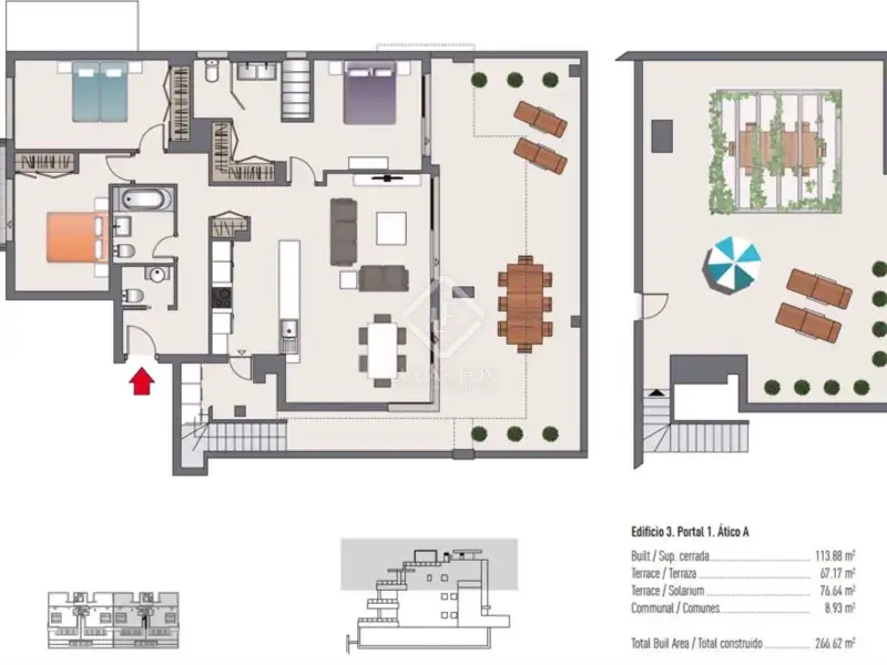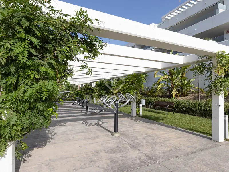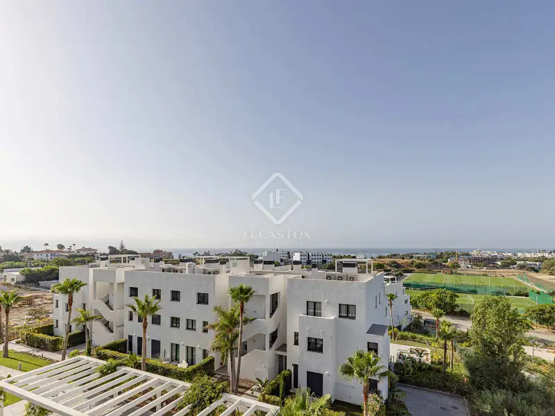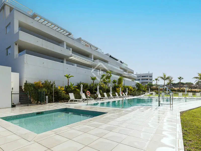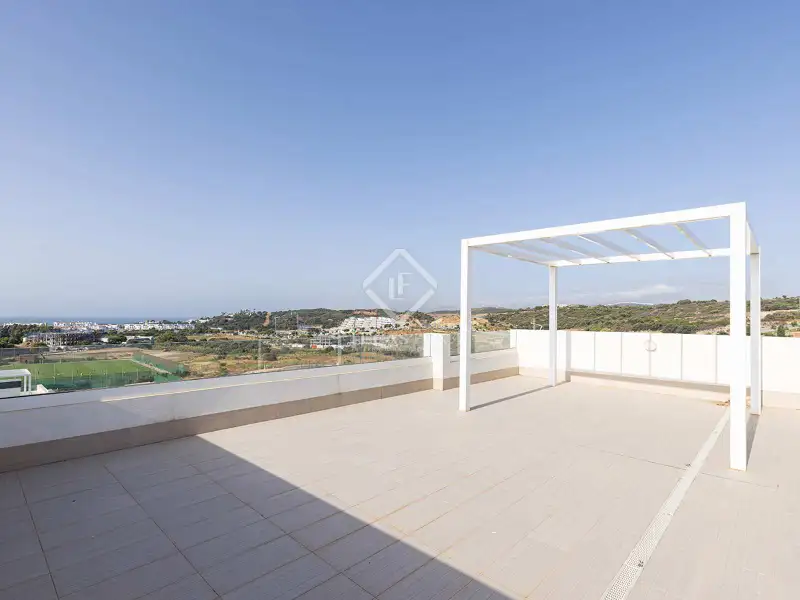 Discover a truly exceptional Mediterranean lifestyle with this beautiful and modern duplex penthouse. The apartment features 3 bedrooms: a bright main bedroom with en-suite bathroom and an additional cloakroom, 2 guest bedrooms and a family bathroom to share. All bedrooms have built-in wardrobes and sun blinds. The entrance hall leads to the open plan fully equipped kitchen and a sunny living/dining room with large floor to ceiling sliding doors flowing effortlessly onto the very generously sized south-facing terrace and amazing rooftop terrace, with breathtaking, panoramic views over the Mediterranean and African coastline. Located in Las Olas, the stunning boutique development of 48 contemporary apartments, is one of the most desirable areas of West Estepona, a prime location, within a few minutes' walk to the beach, nearby amenities, as well as some of the best golf courses on the Costa del Sol. There is a salt water pool in the community and an outdoor fitness area nestled in tropical gardens where you can relax, soak up the Andalusian sun, while also staying in shape. The apartment includes an underground parking space and storeroom within the gated community. A fantastic property with unbeatable views and top location.