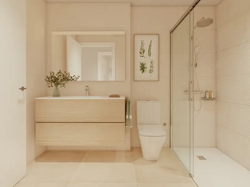 Each apartment is carefully designed to make the most of natural light, privacy, and amazing views of the Mediterranean. Inside, the rooms are spacious, and the large outdoor areas make it easy to enjoy life year-round. The private areas are just as well-designed. Bright, peaceful bedrooms include built-in wardrobes for smart storage. Master bedrooms open onto terraces and include spa-like bathrooms with walk-in showers, LED-lit mirrors, heated towel racks, and high-end porcelain finishes. Every home has a large terrace that’s perfect for relaxing or dining outdoors.